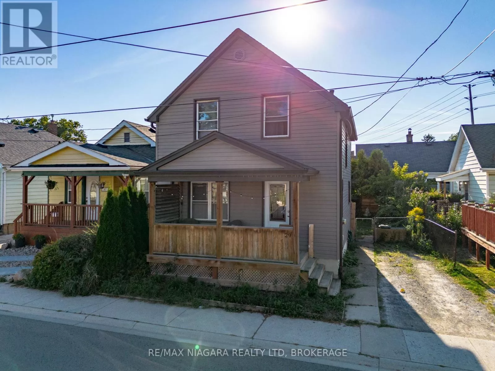 Cross Streets: CARLTON ST - LAKE ST. ** Directions: CARLTON ST - WILSON ST. Cozy 3 bed 1 bath detached home in the Downtown neighborhood of St. Catharines! This 2-storey home features many updates throughout, such as a modern kitchen with quartz counter tops, vinyl flooring and freshly painted throughout, newly re-covered stairs, and a modern 4-piece bathroom with large vanity. The partial unfinished basement features a newer washer and dryer and is the perfect place for storage. The outdoors can be enjoyed from the large front porch, or the rear deck in the privacy of the fully fenced backyard. A shed completes the backyard for extra storage. Other updates include newer eavestroughs and siding, furnace, and A/C. The private driveway is the envy of the street with space for 2 cars! Centrally located and close to amenities, schools, transit and QEW at Lake Street, this home makes the perfect addition to your investment portfolio or an excellent starter home for first time buyers. (id:27476)