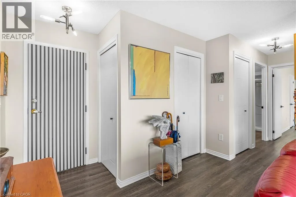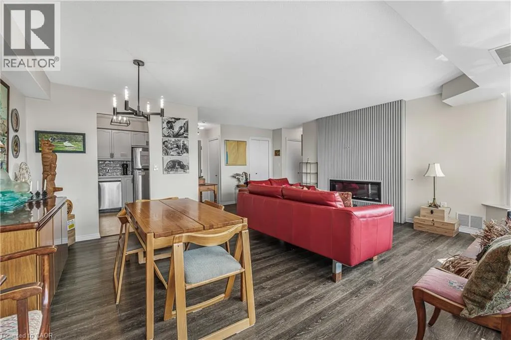 Lake St to Meadowvale to Scott St Enjoy easy and convenient condo living in North End St. Catharines! This bright condo unit in Meadowvale Green offers 2 bedrooms and 1 bathroom, with all the amenities including exercise room, outdoor pool, and underground parking with car wash. Entering the unit, you will immediately notice the large windows throughout the unit, allowing for plenty of natural light to stream in. Open-concept living room with fireplace and modern oak slat wall panels, on feature wall and front door, dining area, and bright updated kitchen with ceramic backsplash. Spacious primary bedroom and guest bedroom, both with larger windows, perfect for enjoying the scenic view. Condo fees include water, cable TV, building insurance, common elements, ground maintenance/landscaping, parking, and more - all you need for carefree living! Plenty of green space to enjoy the outdoors, with several picnic tables and BBQ to enjoy outdoor dining, waterfall, and a heated in-ground pool. Close to many shops, restaurants, grocery stores, Costco, public transit, with easy highway access to the QEW. Just a short drive to Niagara-on-the-Lake with its wineries, shops, and plenty of walking and biking trails. The perfect condo for young professionals or retirees looking for low-maintenance living. Come see it for yourself! (id:27476)