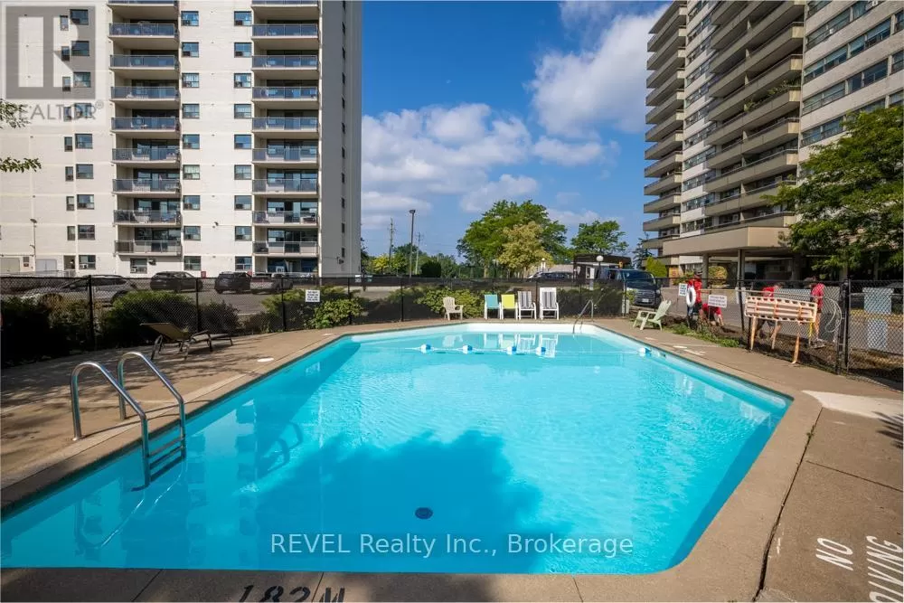 Cross Streets: Glenridgee Aand Belton Blvd. ** Directions: From Downtown St. Catharines take Glenridge south towards Brock. #215 is on your left, across from plaza. The building at 215 Glenridge has visitor parking, inground pool, bright laundry room, party room and an inviting entry. Major components of the building have been updated. Condo fee includes all utilities except internet and parking fee. Large balcony is approx. 19' x 5' with wonderful views overlooking Old Glenridge. The suite has 2 spacious bedrooms, one 4PC bath, open style living room and dining area that opens to the balcony. The kitchen has been updated and includes Fridge and Stove. The fresh coat of paint throughout provides a very bright, clean and inviting suite. Currently the inside parking spot #56 is assigned to Suite 1104. Bell Fibe internet available. Great location; close to the local plaza, downtown St Catharines, Pen Centre shopping center, and just minutes up the hill to Brock University. (id:27476)