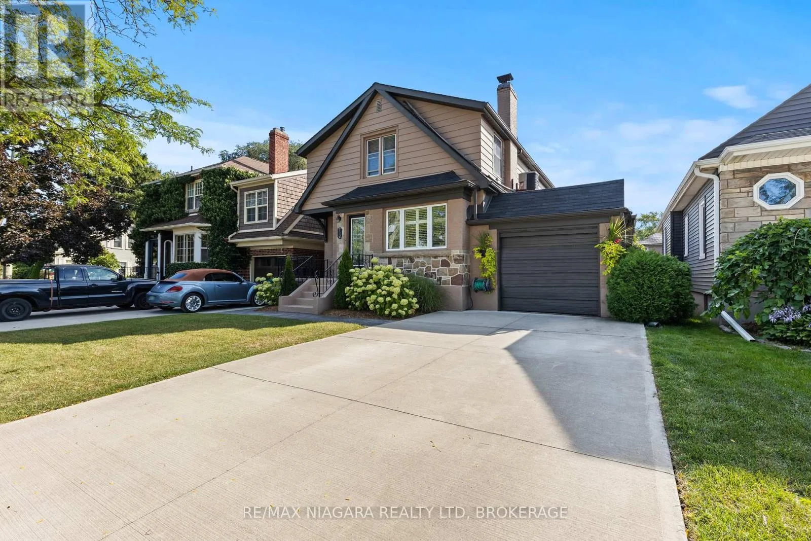 Cross Streets: Glenridge - South Drive off Forest Hill. ** Directions: Glenridge - South Drive - Forest Hill. This charming Tudor-style home in the heart of Old Glenridge offers the perfect balance of timeless character and modern convenience. With approximately 2,500 square feet of finished space plus a fully developed lower level, this residence is ideal for family living. The main floor features a formal living room with fireplace, an adjoining den that makes a perfect office or reading nook, a spacious dining room for gatherings, and a bright four-season sunroom off the kitchen with patio doors to a private patio and perennial gardens. The thoughtful layout also includes main floor laundry and a separate side entrance. Upstairs youll find four well-sized bedrooms, including a primary suite with walk-in closet and 3-piece ensuite. The additional bedrooms each feature laminate flooring and double closets, providing plenty of space for the whole family. The lower level is fully finished with a rec room, games area, exercise space, and a roughed-in kitchenette, creating excellent potential for an in-law suite or expanded living space. Updates such as a granite-topped kitchen island, 200-amp service, central air, and pressed concrete walkways add to the appeal. Situated within walking distance to Burgoyne Woods, downtown St. Catharines and the Meridian Centre, and conveniently located about halfway between Brock Universitys upper and lower campuses, this property combines lifestyle, location, and practicality in one of the citys most sought-after neighbourhoods. (id:27476)
