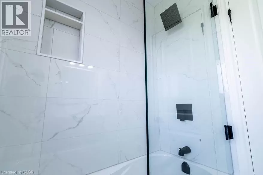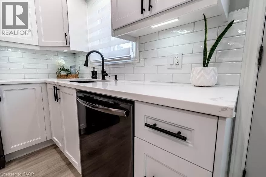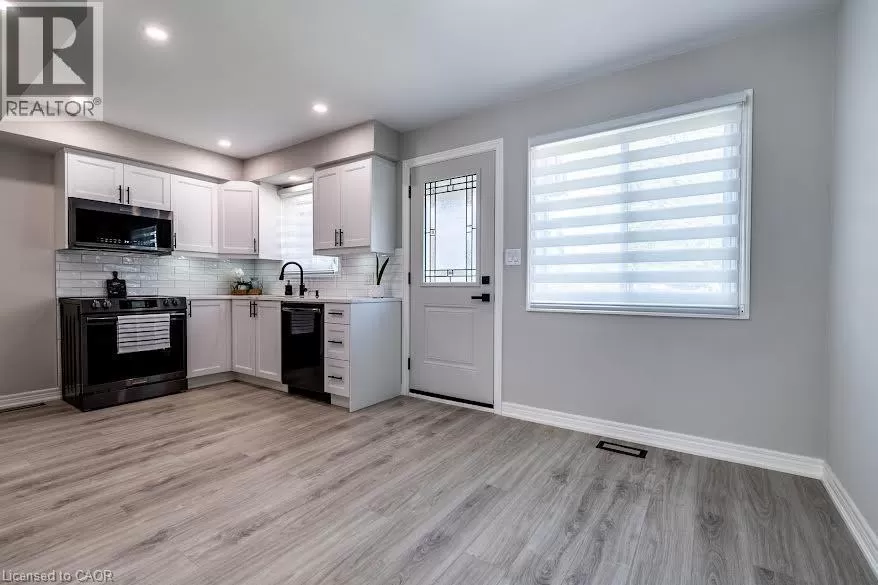 Between Vine St & Geneva St A MUST SEE!!! Welcome to this fully updated 2 Storey semi-detached, 2 + 1 bedroom home with over 1400 sq.ft. of finished floor space in sought after North End St. Catharines. A prime location that puts you minutes away from every convenience - shopping malls, grocery stores, and schools. This turn-key home was designed with comfort and style in mind. Brand new kitchen features new cupboards with sleek quartz countertops and brand new black stainless appliances. The upscaled bathrooms include new vanities, porcelain tile shower/tub with swinging glass door and glass shower enclosure. The eye-catching oak staircase and railing with iron balusters leads to the upstairs that houses two spacious bedrooms with ample closet space. Stylish Updates include: luxury flooring throughout the entire house sets the stage for modern living, complemented by a striking feature brick wall with a wood mantel and 50 sleek fireplace in the great room that is sure to be a conversation starter; all new LED lighting fixtures, window treatments and interior doors and custom trim. Peace of mind comes standard with a durable and long-lasting metal roof, ensuring your home stays protected through all seasons. The open concept basement boasts a huge recreation room or potential 3rd bedroom. The spacious 100 foot+ backyard offers endless opportunities for relaxation or entertaining, while the new driveway, landscaping, side fence, maintenance free brick & stone exterior with new exterior doors, aluminum railing enhances curb appeal and functionality. Every inch of this home has been meticulously revamped. This striking property is a must-see for anyone seeking a turn-key home, be the first to live here! (id:27476)