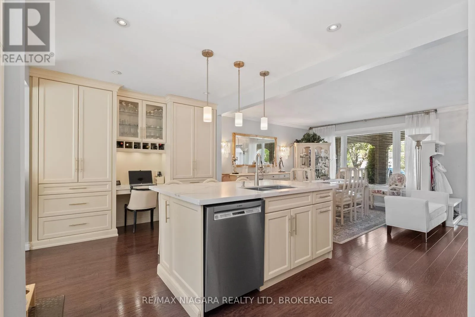 Cross Streets: Linwell Road. ** Directions: From Q.E.W. to Ontario street to Linwell Rd to Centennial. Nestled on a beautiful pie-shaped rolling lot, this home captures the rare feeling of Muskoka while offering all the conveniences of city life. Take in the tranquil views off of your 2 back decks overlooking mature trees and the soothing sound of nature. Inside you will find 2 bedrooms, 2 bathrooms, a spacious sunroom flooded with natural light overlooking a lush landscaped yard. The expansive lower level family room offers a warm and inviting atmosphere with a wood burning fireplace, built in cabinetry, making it perfect for cozy evenings or lively gatherings. It also includes an office area with easy walkout access to your yard. The seller has thoughtfully upgraded many aspects of the home to include a fully renovated kitchen complete with appliances, custom cabinetry, granite countertops, new backsplash, custom lighting and a large kitchen island with a sink. Additional improvements include renovated bathrooms, newer windows, asphalt driveway that can accommodate 5 cars, garage door and flooring, electrical updates, new deck, patio doors, irrigation system, and so much more. Generous storage on the lower level makes this home perfectly suited for downsizing or upsizing. Note- the third bedroom has been turned into a large dressing room, but can be converted back to a bedroom. This desirable North End location is within walking distance to Port Dalhousie, Quick highway access and numerous amenities. If you enjoy entertaining this home is for you. (id:27476)