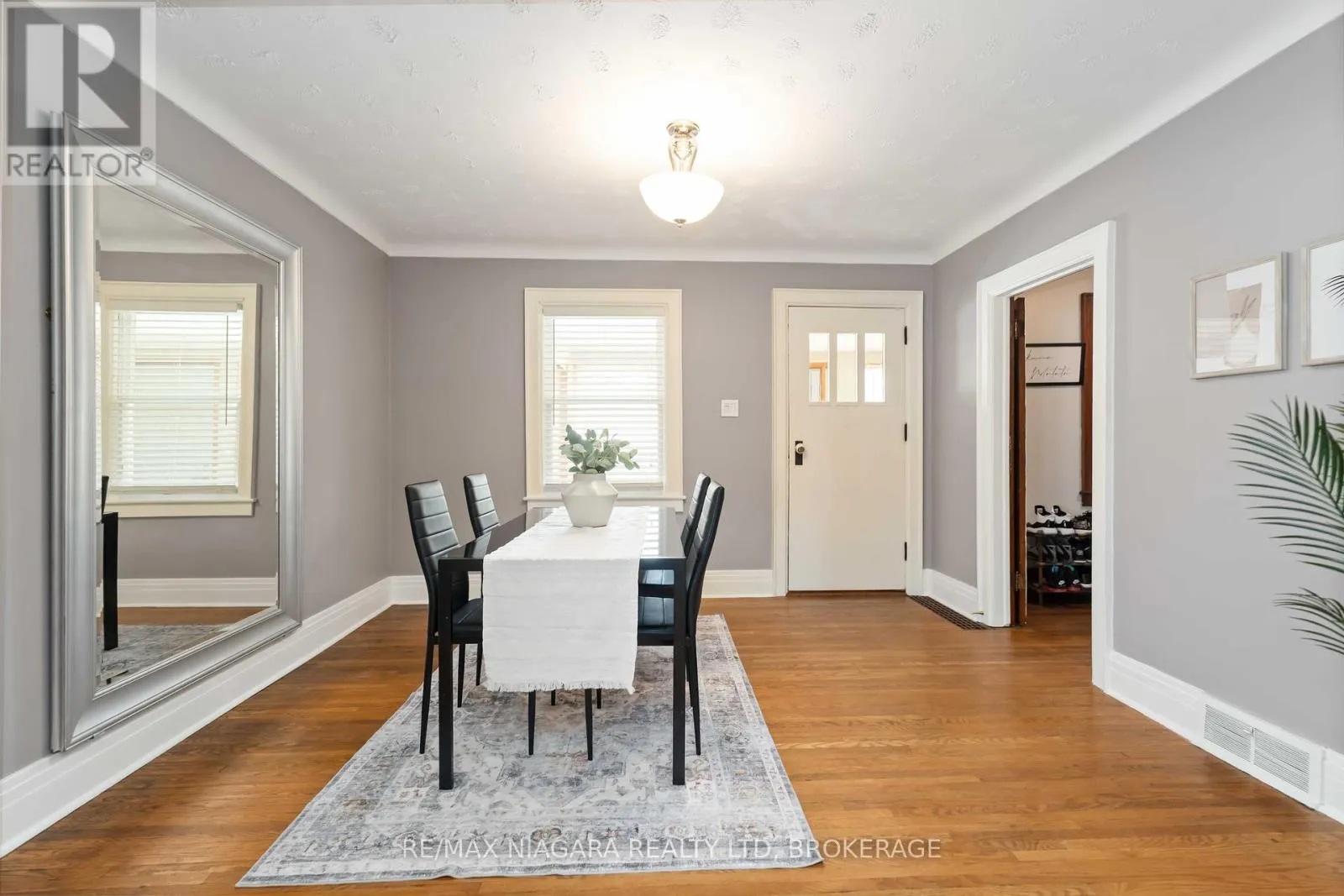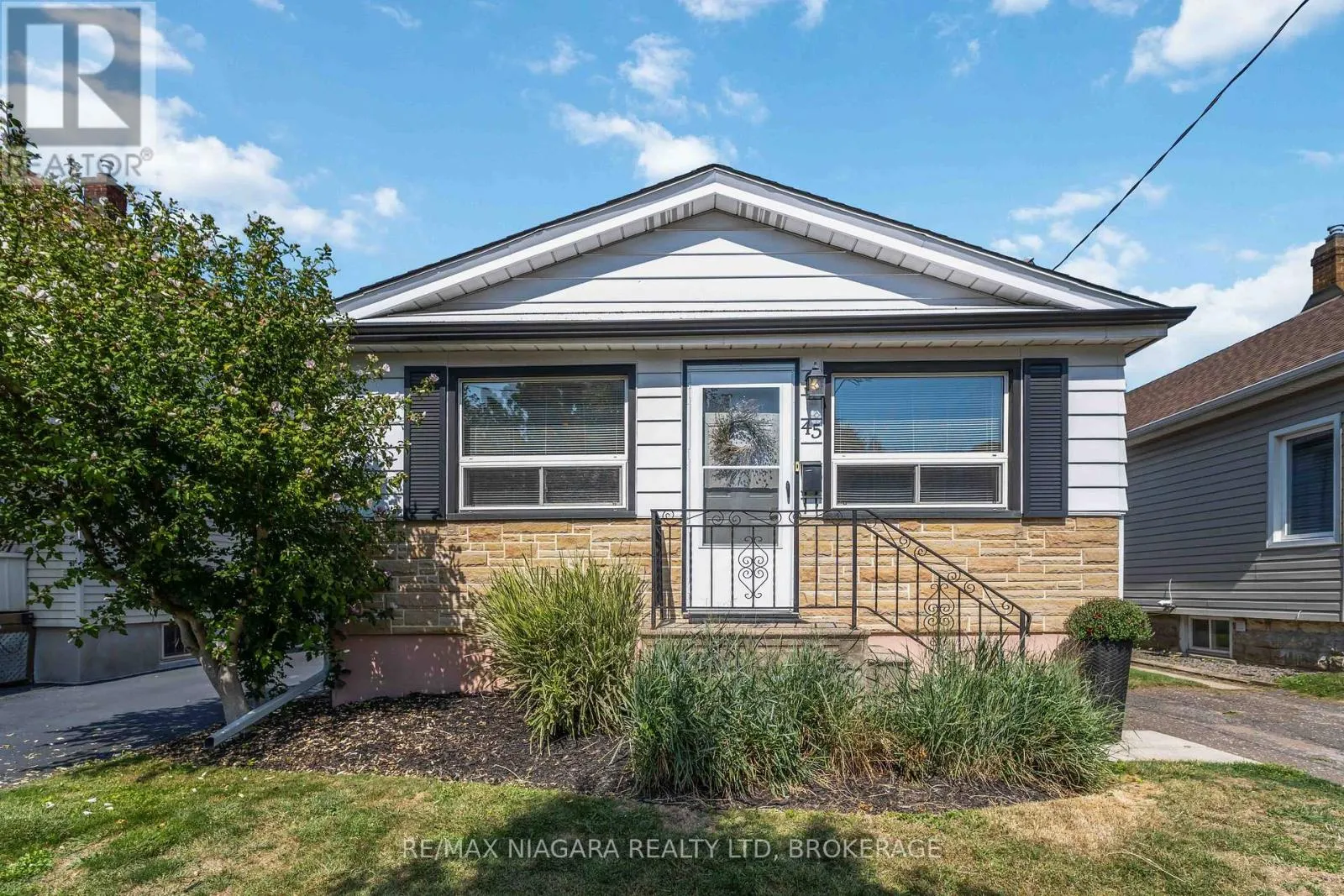 Cross Streets: WELLAND AVE. ** Directions: WELLAND AVE TO WILEY ST TO JUNKIN ST. 3 Bedroom, 2 Bath with finished basement in St. Catharines, a charming bungalow that blends character and comfort in a prime location. The main floor offers a bright living room filled with natural light from large windows, flowing effortlessly into the dining room with warm hardwood floors that create a welcoming atmosphere. The kitchen is functional and sunlit, with ample cabinetry and counter space, making it both practical and inviting. Three comfortable bedrooms and a full bathroom complete the main level, each space designed with ease of living in mind. The fully finished basement provides a spacious extension of the home, perfect for movie nights, a playroom, or even a home office. Updated flooring and neutral tones make this lower level a modern and versatile retreat. Step outside to enjoy a private backyard that feels like its own oasis. A generous patio is perfect for entertaining, framed by lush landscaping and mature evergreens that provide both shade and privacy. The detached garage and private driveway add extra convenience, offering plenty of parking and storage. This home is ideally located close to schools, parks, shopping, and with easy access to the highway. Whether you are a first-time buyer, a growing family, or someone looking to downsize, 45 Junkin Street offers move-in-ready comfort and a lifestyle of convenience in the heart of St. Catharines. (id:27476)