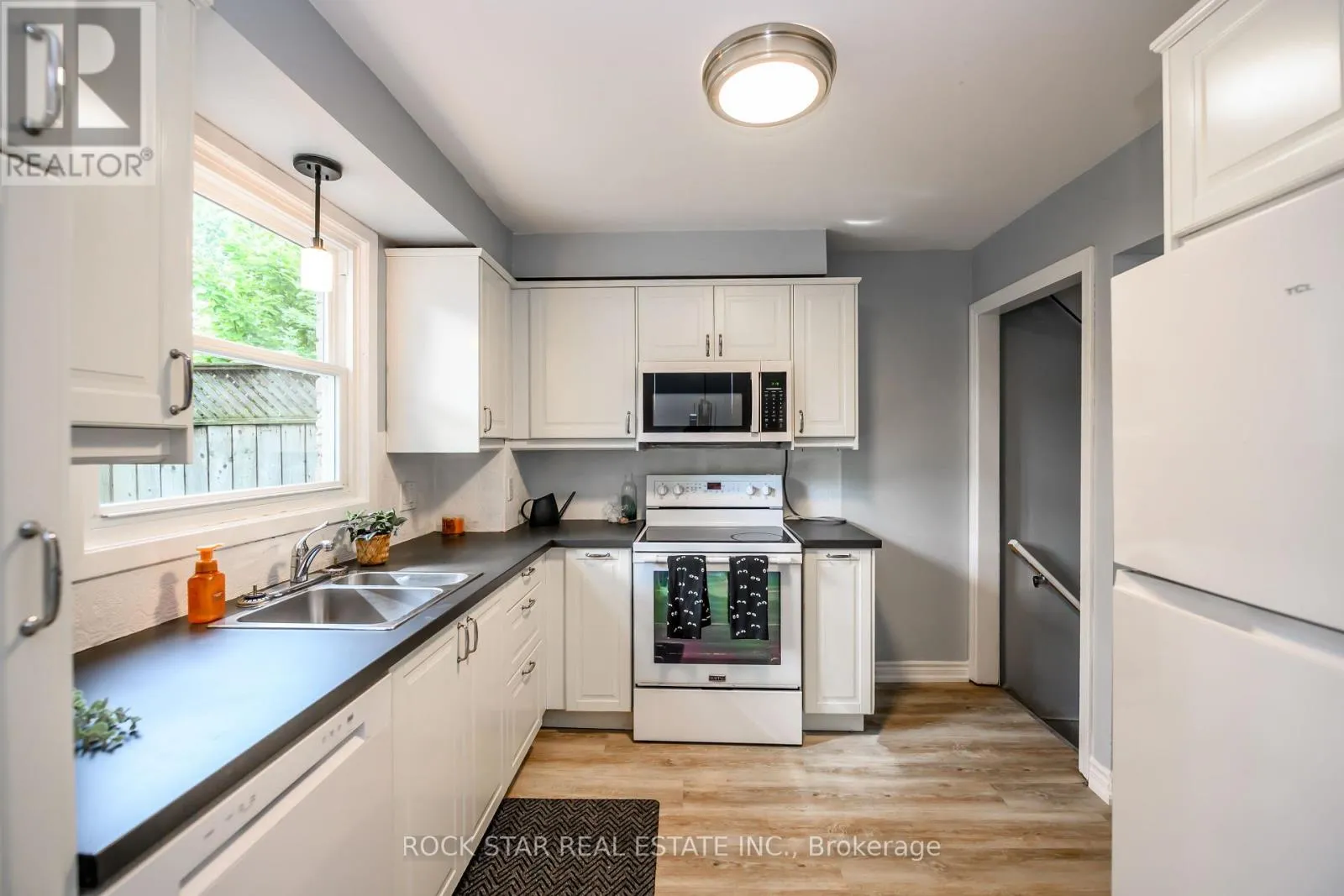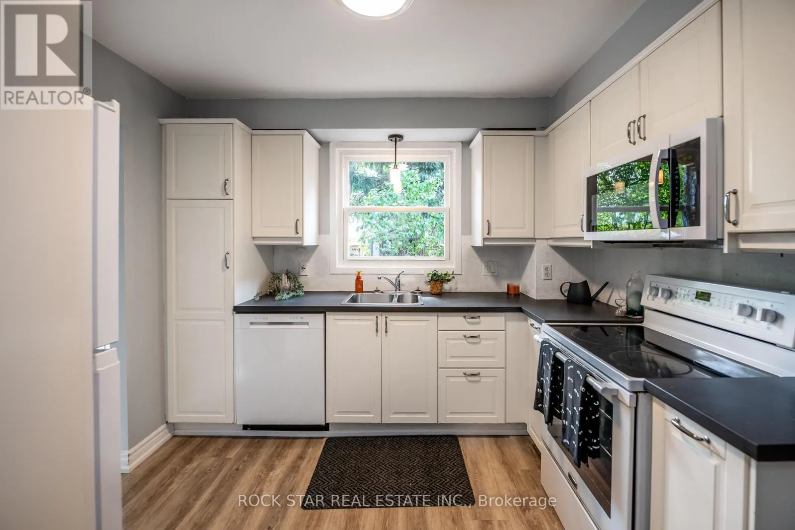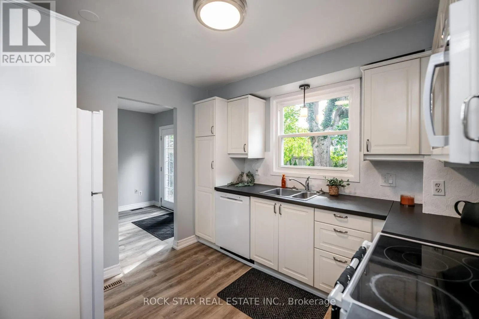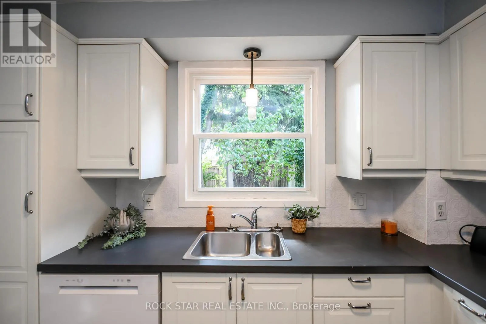 Cross Streets: Oakmeadow Pl & Westgate Park Dr. ** Directions: west of Westgate Park Drive. North End Gem! Welcome to this charming semi-detached home perfectly located at the end of a quiet cul-de-sac. Enjoy the privacy, low-traffic setting, and family-friendly neighborhood feel. Inside, the home features three comfortable bedrooms and a bright, inviting living room with a large bay window, flooding the space with natural light and openness. All floors are carpet-free, with brand-new main floor installation (2025), offering easy maintenance and a modern look. Just carpet on the stairs (2025), adding warmth, comfort, and sound-dampening where its needed most. The kitchen is designed with the classic triangle layout for efficient workflow, and equipped with newer appliances (dishwasher, fridge, and microwave range all less than a year old), providing peace of mind and convenience from day one. Enjoy effortless entertaining with garden doors from the dining room leading to the backyard. Ideal for seamless indoor-outdoor flow for barbecues, gardening, or family gatherings, while also providing natural light and charming views from the dining area. A must-see home with a highly functional layout and prime location! (id:27476)