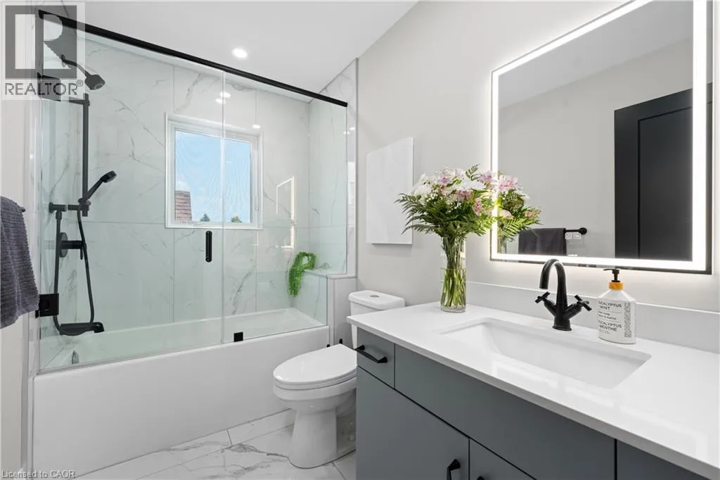 Follow QEW/Queen Elizabeth Wy to Niagara St/Regional Rd 48 in St. Catharines. Take exit 44 from QEW/Queen Elizabeth Wy, Take Facer St to Prospect Ave ELEVATE YOUR LIFESTYLE WITH MODERN LUXURY LIVING From the moment you walk in, this modern two-storey home (built in 2022) sets a tone of comfort and sophistication. The main level glows with layered lighting that makes every space warm and welcomingâperfect for family gatherings or relaxed evenings. Large-format tile adds a sleek, high-end feel while standing up beautifully to everyday life. The open-concept design encourages connectionâwhether youâre preparing dinner in the chef-inspired kitchen with custom Del Priore cabinetry, stone counters, and an oversized island, or relaxing in the living room with built-in cabinetry that blends function with style. From here, step through the dining area into your private backyardâcomplete with a concrete patio ideal for barbecues and summer nights, plus a shed that keeps outdoor gear neatly tucked away. Upstairs, wide oak stairs lead to a level designed for rest. Engineered hardwood flooring adds both warm style and durability, while each oversized bedroom includes abundant closet spaceâso mornings start calmly and organization comes naturally. The primary suite is more than a bedroomâitâs a retreat, with a spa-inspired ensuite and thoughtful finishes that transform daily routines into moments of luxury. Even outdoors, life is effortless thanks to the concrete driveway, walkways and patio, combining curb appeal with low-maintenance ease.Living in the North End gives the best of both worlds: a safe, family-friendly community with quick access to city amenities. The community has top-rated schools, while beautiful lakeside parks invite you to explore trails, waterfront sunsets, and weekend picnics. Shopping, dining, and transit are minutes away, making your lifestyle convenient and balanced. This isnât just a place to liveâitâs a home that adapts to your pace, enriches your routines, and connects you to a vibrant community. Step into the North End lifestyle and make it yours. (id:27476)