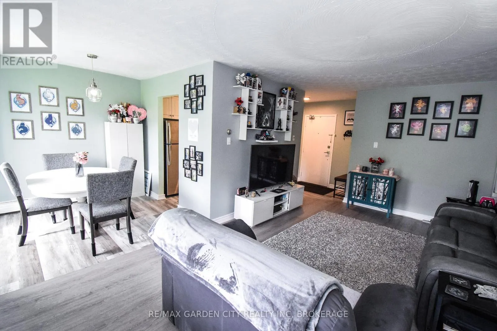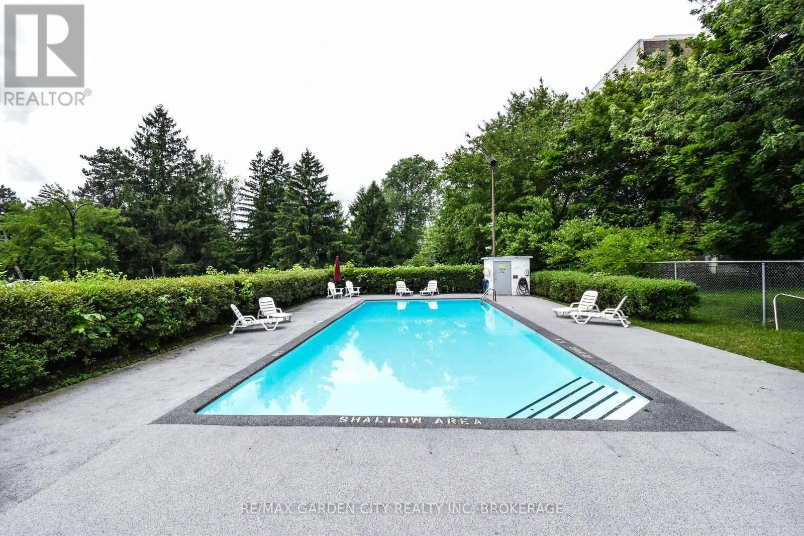 Cross Streets: On Geneva Between Scott St and Carlton St. ** Directions: Geneva St, Between Carlton and Scott. Presenting Suite 811 at the esteemed "Geneva on the Park," a meticulously renovated two-bedroom condominium residence ideally situated. This bright and airy unit boasts a thoughtfully designed layout, maximizing space and functionality. Abundant storage solutions are evident throughout, including generously sized hallway closets and a substantial in-unit storage room, perfectly suited for seasonal belongings. The well-proportioned bedrooms offer comfortable retreats, with the primary suite featuring an expansive walk-in closet. Tastefully updated, the kitchen and bathroom reflect modern sensibilities, complemented by elegant, contemporary flooring throughout the residence. Enjoy seamless indoor-outdoor living with a substantial private balcony, providing a tranquil setting to appreciate picturesque park views. Residents also benefit from exclusive access to a refreshing in-ground pool, perfect for warm summer days.This distinguished adult living complex enjoys a prime north-end location, offering convenient pedestrian access to Fairview Mall and a wealth of local amenities. Commuting is effortless with immediate proximity to the QEW and readily accessible public transit options. Significant recent updates to the property and building enhance its appeal, including refreshed common areas, a resurfaced parking lot, and updated balconies. The main entrance area is currently being updated including a new canopy. This exceptional offering presents an unparalleled opportunity for discerning retirees, first-time homebuyers, busy professionals, or astute investors seeking a low-maintenance addition to their portfolio. We invite you to schedule a private viewing to fully appreciate the lifestyle this remarkable suite affords. (id:27476)
