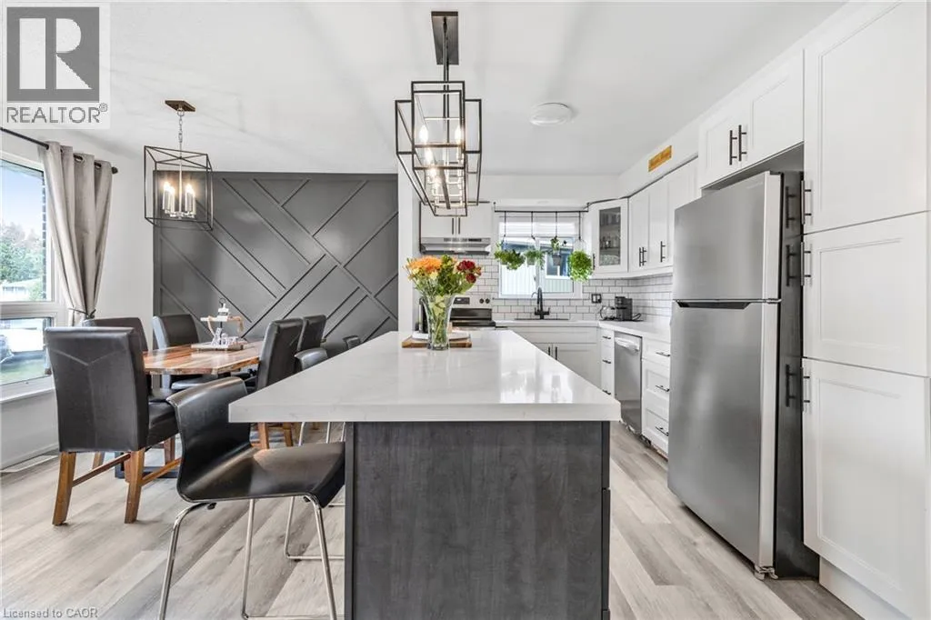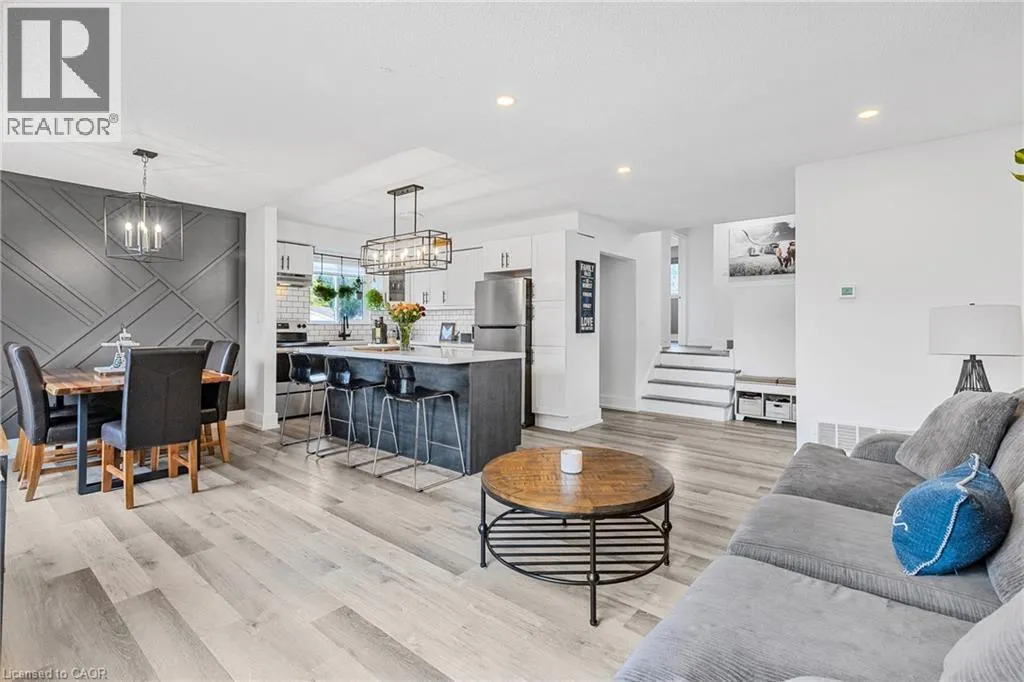 Dorchester Blvd Huntley Cres. Roxborough Court Welcome home to this spacious four-level backsplit with three bedrooms and two bathrooms, tucked away in the middle of a family-friendly court. The main floor boasts an inviting open-concept layout with a bright kitchen, dining, and living area, ideal for family living and entertaining guests, all overlooking the court. Upstairs youâll find three comfortable sized bedrooms and a full bathroom. The finished recreation room offers additional space with an appealing three-piece bathroom, while the lower level provides laundry, a freezer, and extra storage. Outside, enjoy a large backyard with a fire pit, a detached garage that fits a car + work area, and a wide gate allowing access to store a boat, trailer, or larger items. With driveway parking fit for four to five vehicles. Also a second private entrance to the lower levels, with its own doorbell. A good location close to schools, bus stops, shopping, highway, and the Welland Canal, this home is the perfect setting for family life. (id:27476)