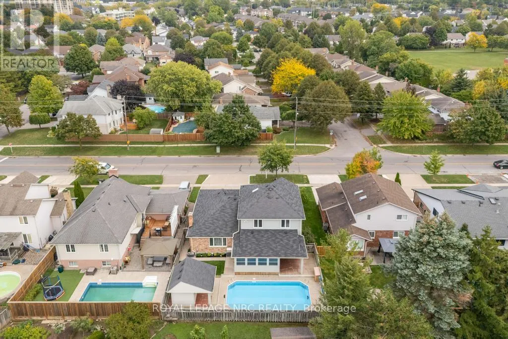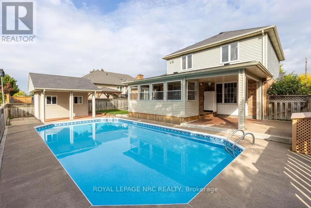 Martindale to Erion to First Street Louth There's something timeless about a home that has been loved by the same family since day one. That feeling of comfort and permanence begins the moment you arrive at this classic 2-storey in a sought-after St. Catharines neighbourhood. With its double garage, covered front porch, bay window, and welcoming double doors, curb appeal comes naturally here. Set back on a generous lawn with low-maintenance yet charming gardens, the house makes an impression before you even step inside. The main floor opens with a grand curved staircase in the foyer, setting the stage for the character and space that define this home. From here, you'll find a family room anchored by a bay window, flowing seamlessly into a formal dining room. The eat-in kitchen sits at the heart of the home and connects directly to the sunken living room where a fireplace and oversized window create that classic, movie-like atmosphere. Just beyond, a 3-season sunroom opens onto the backyard. With an inground pool, shed, fenced yard, and low-maintenance gardens, this space is ready for entertaining or unwinding. Also on this level: a powder room and a laundry room that doubles as a mudroom. Upstairs, 3 large bedrooms offer plenty of room for everyone. The primary bedroom includes a walk-in closet, while the others feature double closets. A skylight and high ceilings brighten the landing, while a 4-piece bath with a jacuzzi tub and separate shower serves the level. The basement expands the living space even further with a massive rec room perfect for a home theatre, games area, or gym. A 4th bedroom, 4-piece bath, cold cellar, and abundant storage complete this level. With hardwood floors throughout the main and second levels, classic French doors, thoughtful light fixtures, and features that never go out of style, this is a quintessential family home in a location that connects you to parks, schools, and shopping. With space to spare and stories still to tell, this home is ready for its next chapter! (id:27476)