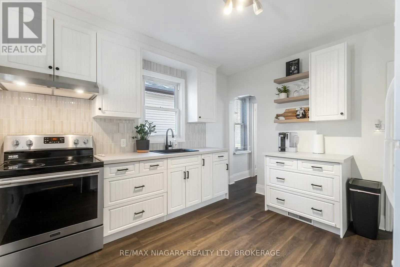 Cross Streets: Dunkirk/Vine. ** Directions: Dunkirk &Vine to Bertram. Beautifully Updated 1.5 Storey Home Tucked away on a Lovely Private Street- Convenient Location for Commuters with Easy QEW Access in Developing Location just 5 Minutes drive to everything Downtown St.Catharines Has to Offer Including Amazing Restaurants, Shops and Amenities! The Welcoming Covered Front Porch leads you to this Spacious Open Concept 2 Bedroom with potential to easily add back 3rd Bedroom on the Main floor. Bright renovated functional kitchen with floating shelves and lots of counter space. Spacious Living Room/Dining Room with Pot Lighting, Main floor Family Room. Updated Bathroom with Shiplap Accent wall.Cozy Sunroom overlooking Spacious fenced backyard with patio and gazebo, perfect for entertaining and summer barbeques. Private Driveway and Detached Garage. So many updates done here over the years including: Kitchen 2025, Furnace & AC 2021, Flooring 2023, Plumbing 2021, New Fence 2021, Gazebo 2023, Freshly painted 2023, Updated Porch, Updated Bathroom.Appliances included- Fridge, Stove, Washer and Dryer. Close to all amenities, parks, schools, walking trails and transit. (id:27476)