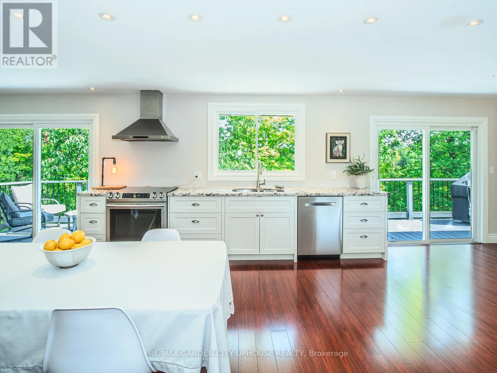 Cross Streets: KING STREET OR PELHAM ROAD. ** Directions: KING STREET OR PELHAM ROAD TO NINTH STREET. Welcome to a little slice of heaven here in Niagara in the bio diverse community of Rockway Glen. This 1500 sqft sprawling bungalow with a basement walks out into an enchanting 3/4 acre backing on to the woods of Rockway Glen. The moment you walk through the door you are going to know it feels right. Timeless cherrywood hardwood floors and oversized windows fill the room. A classic yet modern country kitchen to the back overlooking the lush canopy is the heart of the home. Easily picture a farm table for extended family gatherings. A bright living room to the front with sunsets over the award winning golf course. 3 good size bedrooms on the west wing with a picture perfect ensuite in the primary. Down, is an entertaining dream. Watch the big game or an Oscar winning performance with a high end theatre room set UP complete with high fidelity sound. A 4th bedroom, bath, plenty of storage and a perfect place for the kids to play. Complete with a dream workshop with its own entrance. Outback is where the magic happens. Host garden parties or just breath in the tranquility of the forest. Its a dazzling display of all 4 seasons. Feeling ambitious? This location has it all. A short hiking distance to the lower Waterfalls or celebrated wineries and farmers market stalls. Magic is abound. Ninth Street in Rockway Glen. This is the one you have been waiting for. (id:27476)