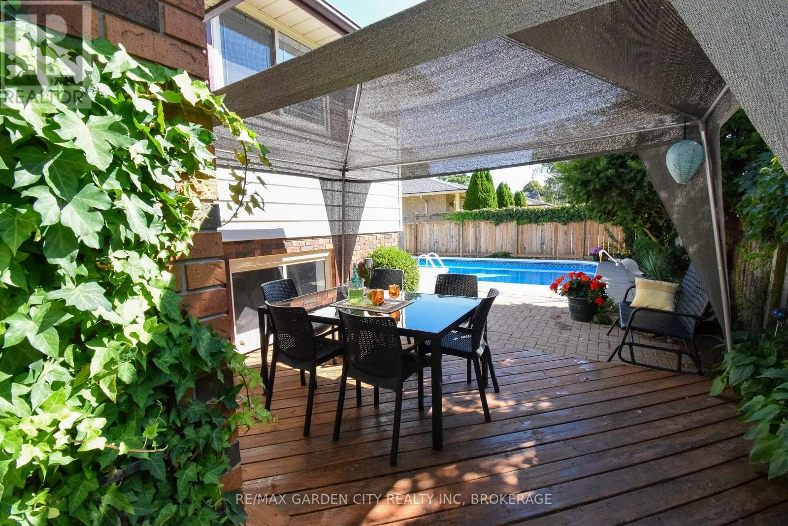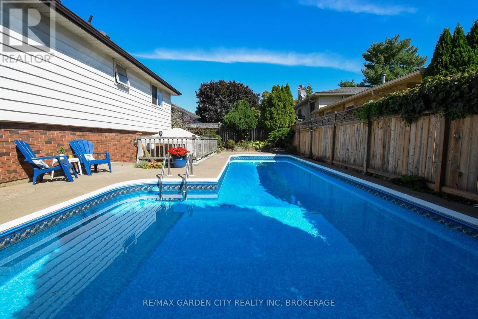 Main to Court Leigh to Belair Beautiful and unique three plus one bedroom and three bathroom multi level family home built by John Boldt in 1982. Located in prestigious Cole Farm area one block from lake Ontario and minutes from Port Dalhousie. Features include spacious kitchen, living room and dining room along with an addition of a sun room with doors leading to an inground pool and private fenced yard. Second level has two bedrooms and one bathroom. Unique to this home is an addition on the third level consisting of large master bedroom and a three piece ensuite. The walk out basement is finished with an extra bedroom, includes a family room with a wood burning fireplace, a sewing room, and a storage room. Exterior features a 1 and a 1/2 car garage, beautiful landscaping, and a cozy front porch for evening relaxation. Updates include furnace 2021 and A/C 2016. Most windows replaced, roof has been updated in 2015, and pool liner in 2012. Located only blocks to schools and church's. This is a wonderful family home. (id:27476)
