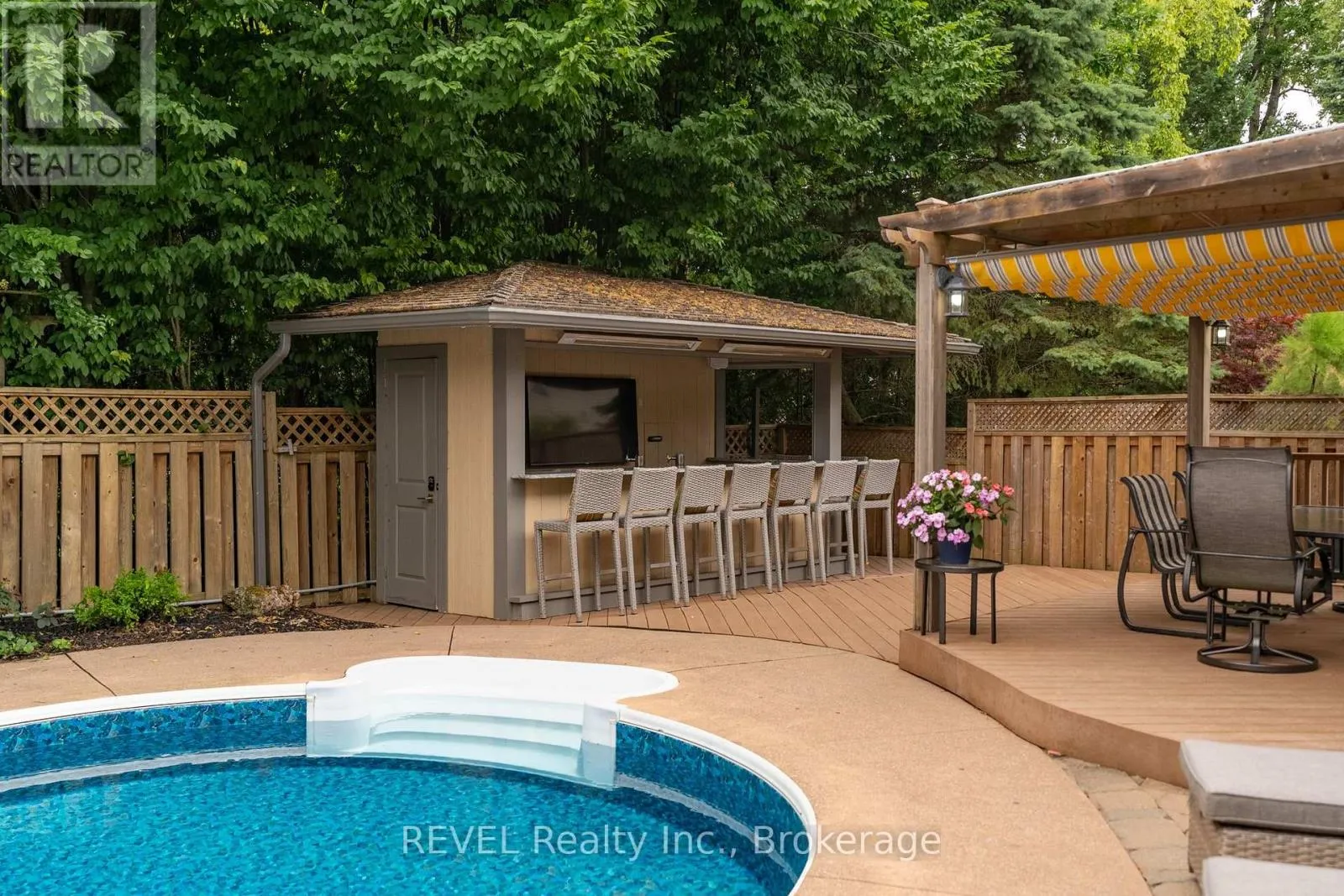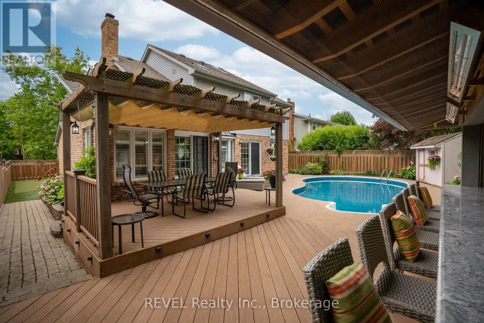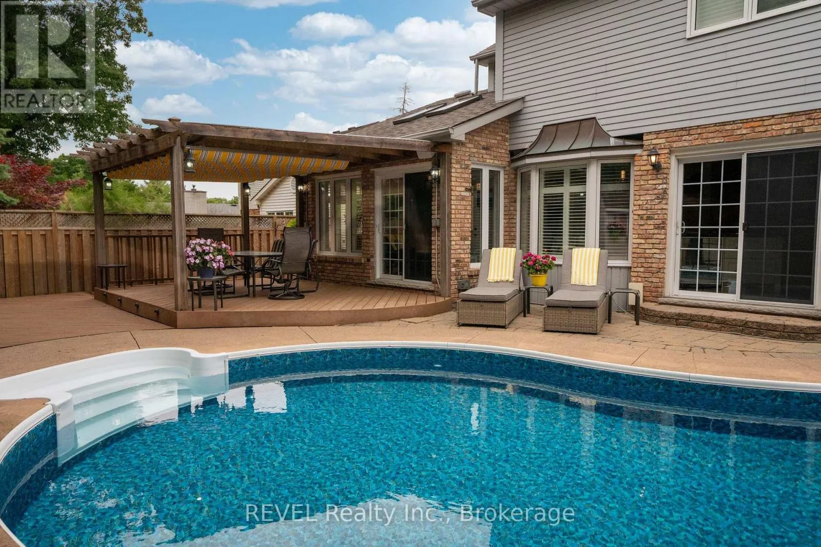 Cross Streets: MASTERSON DRIVE. ** Directions: GLENDALE AVE/GLENRISGE AVE/ SOVEREIGN DR. Experience the ultimate in entertainment living at 78 Sovereign Drive. Nestled in the coveted south end Glenridge neighborhood of St. Catharines. This exceptional property features an inviting in-ground pool, an unparalleled cabana pool bar; featuring heaters, automatic shutters, two kegerators, wine and soda fridges, an ice bucket, speakers, granite counters, and a liquor dispenser. A covered dining area with an awning, a putting green in the side yard, a sunroom, an oversized kitchen island, a wine cellar, and a fitness room amenities that will make your home the envy of all your friends and family. This 5-bedroom family home is filled with custom details and boasts a unique open concept layout. As you enter, you're greeted by an open staircase, the dining room with a vaulted ceiling, a spacious chef's kitchen, a sunken living room with a wood-burning fireplace, and a one-of-a-kind kitchen island and bar area create a welcoming atmosphere. The sunroom addition with its vaulted ceiling and skylights provides seamless access to the stunning backyard. On the main floor, you'll find convenient access to the attached 2-car garage, a laundry room, and a powder room. Upstairs, the home continues to impress with California shutters, wainscoting, skylights, four spacious bedrooms, a 4-piece bath, and a primary suite featuring a walk-in closet, a 5-piece jetted tub ensuite and a gas fireplace. The lower level of this naturally bright home is designed for entertainment and relaxation, featuring a wine cellar, a recreation room, a games area, a gym, and a guest bedroom with an ensuite boasting heated tile floors, an oversized shower, and a raindrop shower head. Located just down the hill from Brock University, shopping, amenities and a short drive to the St. Catharines Golf & Country Club, this home offers both luxury and convenience. (id:27476)