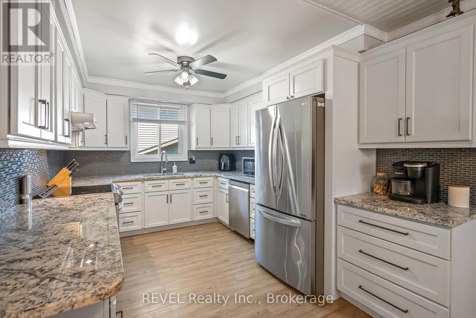 Cross Streets: Vine Street between Scott and Linwell. ** Directions: Head north on Vine Right on Sliverdale. Simply Move in and Enjoy A Home That Checks All the Boxes! This well-maintained raised bungalow offers exceptional versatility with a separate in-law suite, ideal for multigenerational living or added privacy for guests. Designed for comfort and functionality, the lower-level suite features a private entrance, above-grade windows that fill the space with natural light, a fully equipped kitchen, a 3-piece bathroom, and a spacious bedroom. Upstairs, the main level has a bright and welcoming layout with three comfortable bedrooms, a spacious living area, and a kitchen updated with granite countertops and stainless-steel appliances (2020). Enjoy the outdoor space backing directly onto a park with no rear neighbors, just peaceful views. A double car garage and wide driveway offer ample parking and storage space. Conveniently located within walking distance to schools, shopping, and public transit, and just minutes to major highway access for easy commuting. Notable Upgrades Include: New furnace & A/C (2020)New roof, soffits, fascia, and eaves with 25-year transferable warranty (2023)All windows replaced (2021)Owned tankless water heater, water softener, and HEPA filter on furnace (2022)New garage door motor (2025)New lower-level kitchen (2018)Upgraded 200 AMP electrical panel (2018)This home is perfect for families seeking space, flexibility, and modern convenience. Live together, but separately in a home that adapts to your lifestyle. (id:27476)