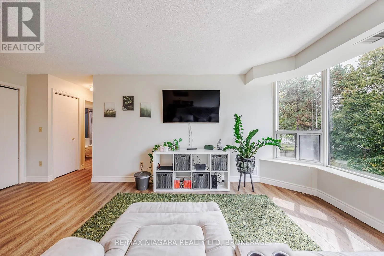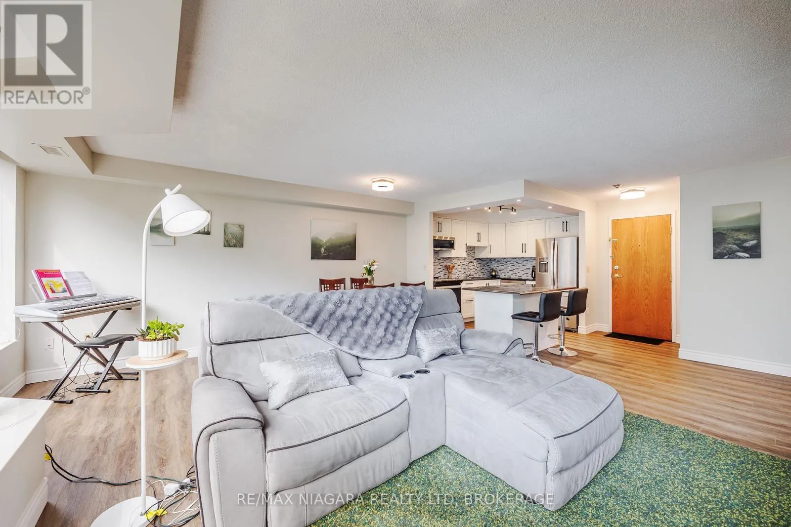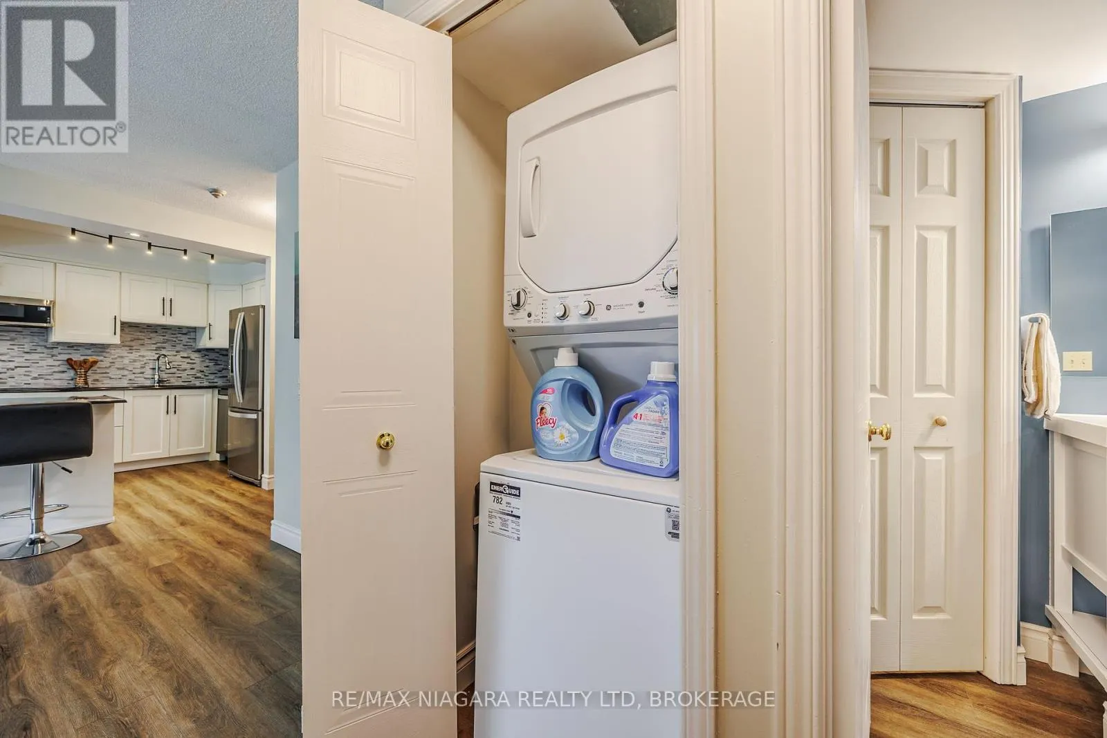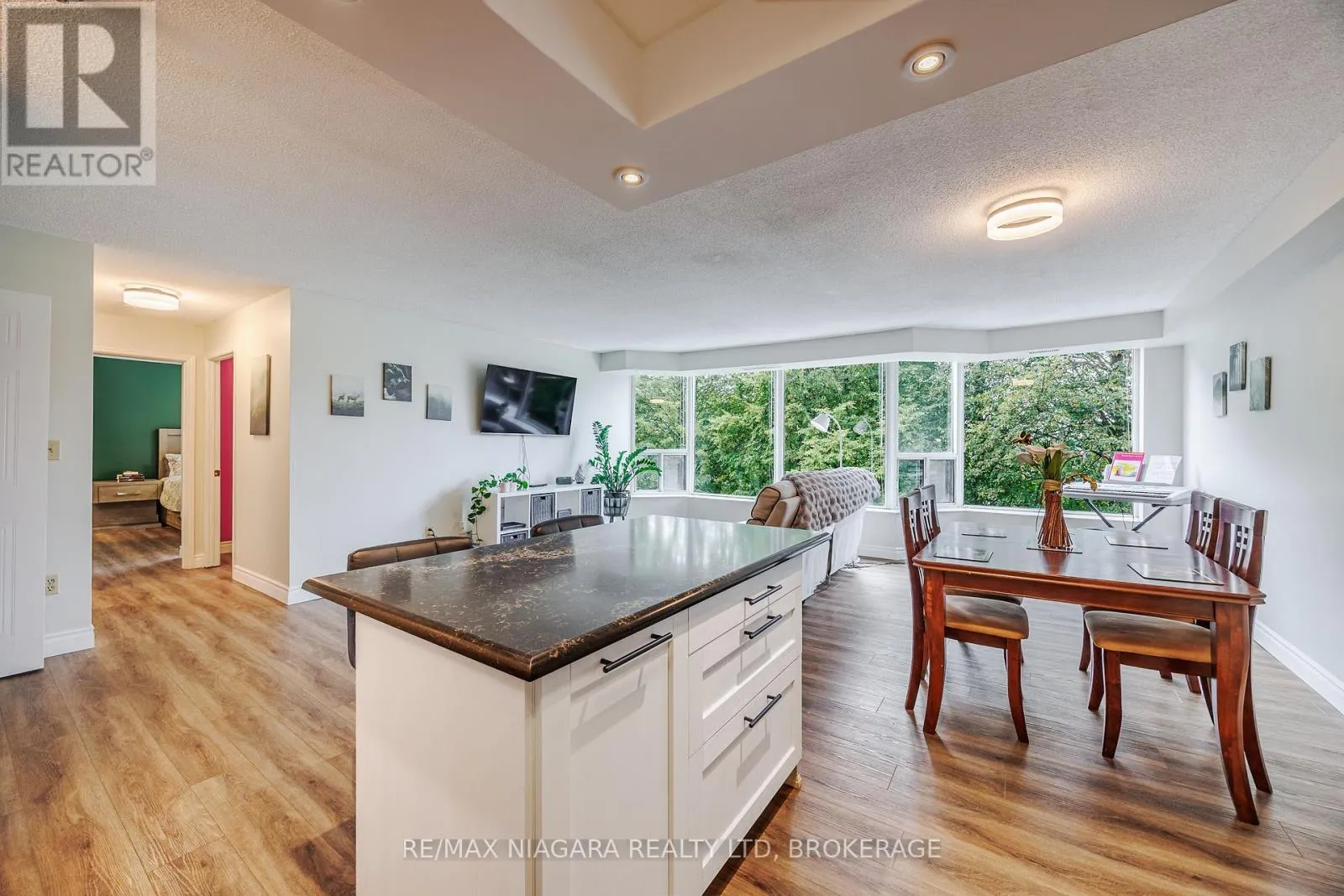 Cross Streets: Scott St. & Meadowvale Dr. ** Directions: Scott St. Near Meadowvale Dr. There is so much to love about this beautifully renovated 2 Bedroom unit in the luxurious Meadowvale Green complex. Once inside, your eyes are drawn to the wall to wall windows that face a scenic and peaceful, forest-like view. The new (2024) open concept Kitchen has ample white cabinetry and counterspace, backsplash, stainless steel appliances and features an island with seating. The Great room is very bright and spacious and includes a dining area with worry-free vinyl flooring (2024). The main bath was also thoughtfully reno'd with new fixtures, vanity, flooring, and lighting. A handy linen closet is tucked inside too. The Primary Bedroom is large with a walk-in closet , vinyl flooring and a great view. A delightful sanctuary to relax and enjoy. The Guest Bedroom is a good size and could double as a perfect Office or Den. There is in-suite Laundry, a pantry/storage closet, central air and updated laminate and tile flooring throughout. The building is situated in a park-like setting and loaded with amenities. There is an inground heated salt-water pool, sitting area with waterfalls, BBQ area and picnic tables, guest suite gym, party room, designated underground parking, a car wash and plenty of guest parking. The location is close to the QEW, shopping, restaurants and public transit. Its the lifestyle you deserve! (id:27476)