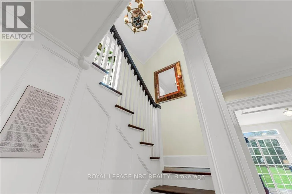 Yates St and Trafalgar St Welcome to Trafalgar Manor, historically recognized as the Burgoyne House, situated in the Yates Street Heritage District of downtown St. Catharines. This distinguished residence is featured in a video series produced by the St. Catharines Museum. Constructed in 1870, it received its designation under the Ontario Heritage Act in 2001. Beyond its historical significance linked to its former owners, the manor boasts several remarkable architectural characteristics. In the 1920s, it underwent extensive renovations and expansions, presenting a striking Classical Revival Style. Key features include intricate brickwork, an Oriel window, decorative limestone lug sills, and exceptionally tall windows and doors. The house's orientation, which faces away from Trafalgar Street, further enhances its privacy and exclusivity. The Yates Street Heritage District offers an array of architectural styles and historical periods, making this residence a unique acquisition that embodies a piece of Niagara's history. Among its noteworthy features, the property includes a spacious downtown lot of nearly 0.5 acres, with the backyard gardens beautifully restored by a dedicated team, revitalizing the landscaping to its former glory. This remarkable location is just minutes from Ridley College. The interior of this home has been fully restored and updated, featuring six fireplaces, four bedrooms, a great room, a living room, and an exquisite dining room. This residence is a must-see for anyone who values fine architecture. Modern enhancements include two furnaces and air conditioning units for year-round comfort on each floor, a backup generator, and a completely updated electrical system. The home combines historical charm with contemporary updates, showcasing impressive qualities inside and out. This rare property is ideally suited for an discerning owner who appreciates true history and the finer aspects of life. (id:27476)