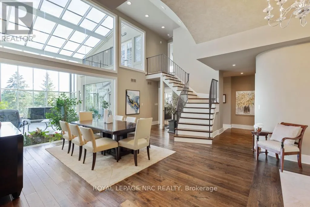 Cross Streets: Rockcliffe Road. ** Directions: Glenridge Avenue, east on Rockcliffe Road, north on Riverdale Drive. STUNNING EXCLUSIVE GOLF COURSE FAMILY HOME! Beautiful one-of-a-kind 4 bedroom home backing onto the St. Catharines Golf Club by award winning Pym & Cooper, this unique home is truly an architectural & design masterpiece featuring the highest quality craftmanship and impeccable finishes! Features dramatic glass Atrium with 20 ft. ceiling, floor to ceiling windows allowing an abundance of light and gorgeous nature views. The Atrium features heated floors and a custom water feature, perfect for entertaining! (This room could be re-designed as a STUNNING Livingroom) Surrounding the Atrium are large principal rooms including a magnificent foyer with soaring vaulted ceiling, large formal Dining room, Greatroom with Kitchen by Enns, 2 islands, quartz, coffered ceiling, high end appliances, Livingroom with fireplace, custom mantle surround. Main floor den/office, Powder room and Sunroom. Main floor Primary bedroom with huge dressing room, 5 pc spa like ensuite w/steam shower, exercise room. Second floor bedroom with w/i closet, ensuite and Juliet balcony overlooking the Atrium and golf course views. EXCEPTIONAL basement offers hours of family fun w/heated floors thruout, large Games Room, Recroom with Golf Simulator/Theatre room, 2 spacious bedrooms, 2 baths, walk up to 3rd garage. 4th bedroom currently in use as an office. Beautiful stone exterior has huge curb appeal. Triple garage with electric car charger and rear overhead door open to backyard and golf course. Sep. entrance to lower level makes for an IDEAL IN-LAW. Beautiful hardscape and pool size back yard w/breathtaking views! Located in sought after Old Glenridge, walking distance to downtown, Meridian Arena, PAC, Golf Club. Close to excellent schools, Ridley College, Brock U. all major highways, hospital, parks, hiking trails, and wineries. Live your best life in this outstanding home! **NOTE Electric golf cart and Golf Simulator are included! (id:27476)