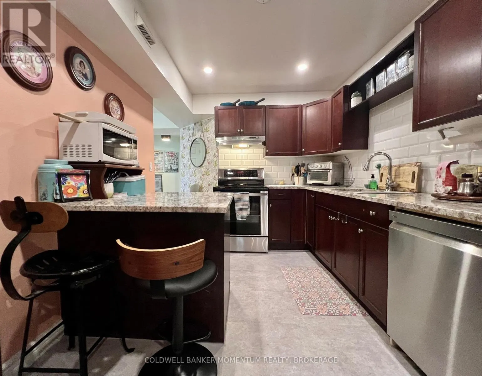 Cross Streets: Carlton Street. ** Directions: Carlton to Dorchester. THE HOME: Enjoy carefree, affordable living at its best where pride of ownership is evident in this well managed Northend complex. The welcoming foyer with inside access to your garage and coat closet exudes a warm a cozy feel. Head upstairs to your 1350 sq ft one level living, where you will be impressed with the space this home has to offer including 3 bedrooms, 2 full bathrooms and a separate dining room and living room. The kitchen gives all the feels with granite countertops neutral backsplash and an island for added storage. Open flowing spaces that give a cool vibe allow for easy entertaining inside or outside on your private balcony that overlooks a mature setting. The primary bedroom oasis features a walk in closet and ensuite bathroom. Just off the living room are 2 more very generous sized bedrooms and a 4 piece bathroom. This home also offers a separate in house LAUNDRY space and a generous sized storage room, it just covers all the must haves for a convenient lifestyle. NOW FOR A NEED TO KNOW... VERY LOW monthly condo fee of $352.00 that includes all the normal exterior maintenance, windows, doors, balconies etc., also includes your cable TV and water. New Carpet on the stairs, Backsplash, pot lights in living room, new light fixtures and ceiling fans, painted throughout. Close to all things convenient, great schools, access to public transit and only minutes from the popular Welland Canal walking path. A very unique layout and absolutely pristine move in condition!! (id:27476)