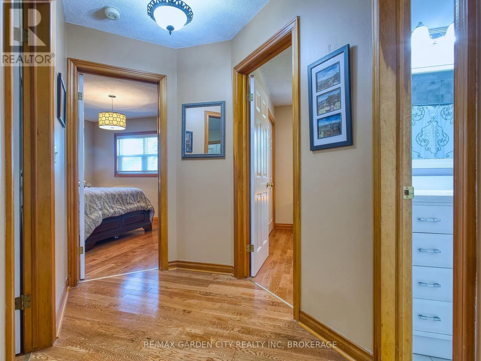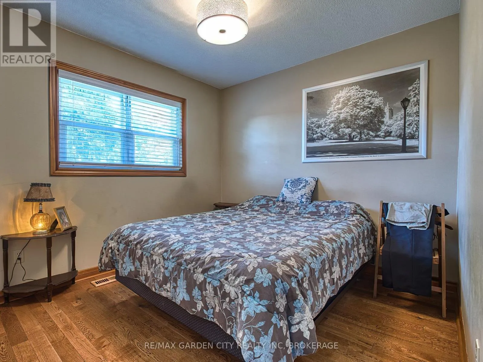 Cross Streets: Martindale Road. ** Directions: QEW to Martindale Road, to Harvest Oak Drive. Charming brick bungalow in the heart of Martindale! Welcome to this custom-built brick bungalow on a large corner lot in one of St. Catharines' most sought-after neighbourhoods. This well-maintained home features 3 bedrooms and 2 bathrooms on the main level, highlighted by wood floors and a bright skylight in the main bath. The primary bedroom includes a cedar walk-in closet, with an additional cedar closet in the basement for extra storage. Recent upgrades include new windows and a sliding patio door installed in 2021. Step outside to enjoy the beautifully landscaped yard and spacious fenced backyard ideal for relaxing or entertaining. Conveniently located just steps from Huntington Plaza, Ridley Plaza, the hospital, and with easy access to the QEW and Hwy 406. (id:27476)