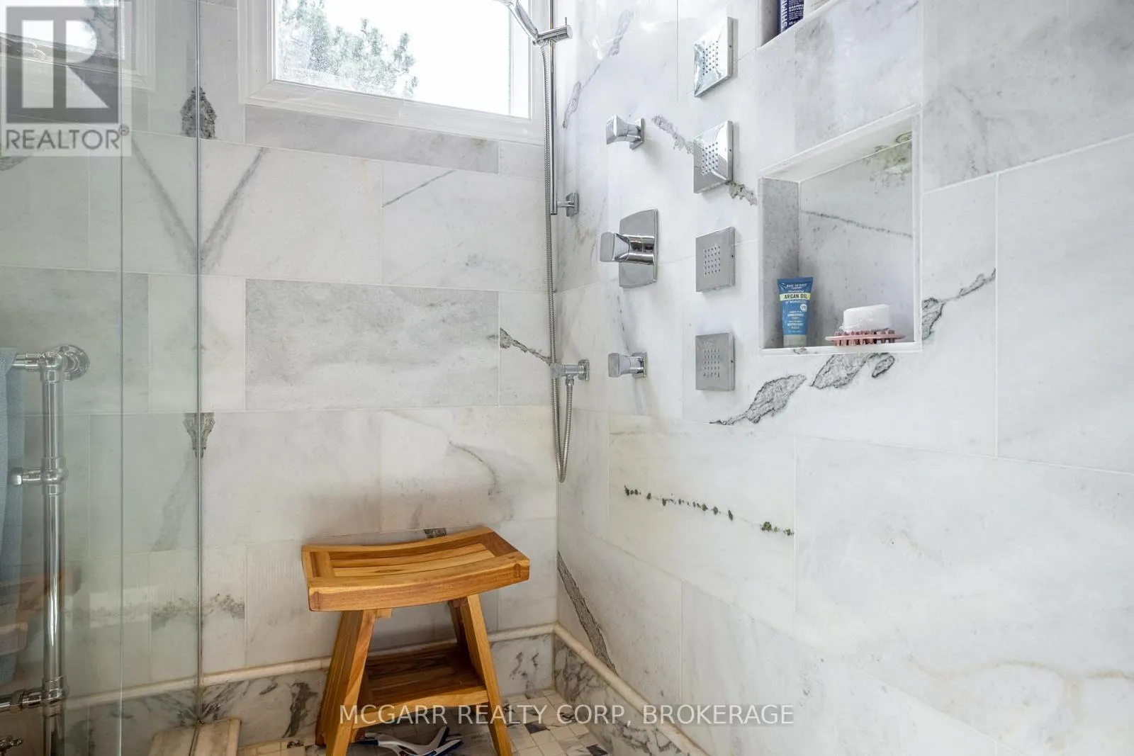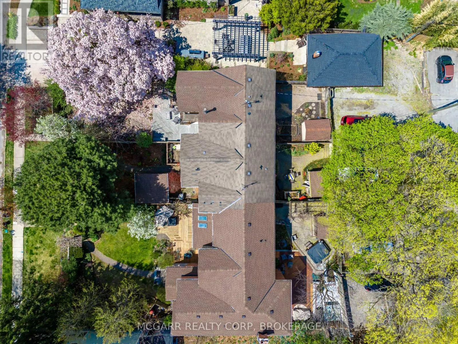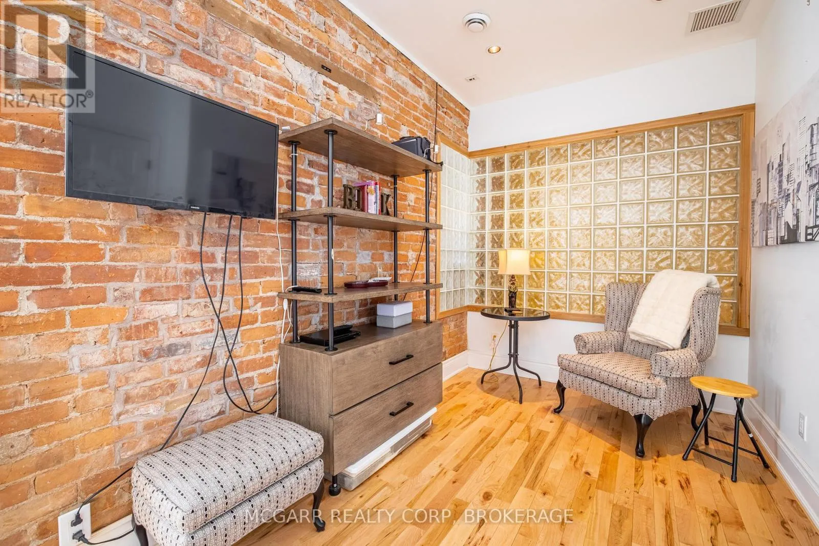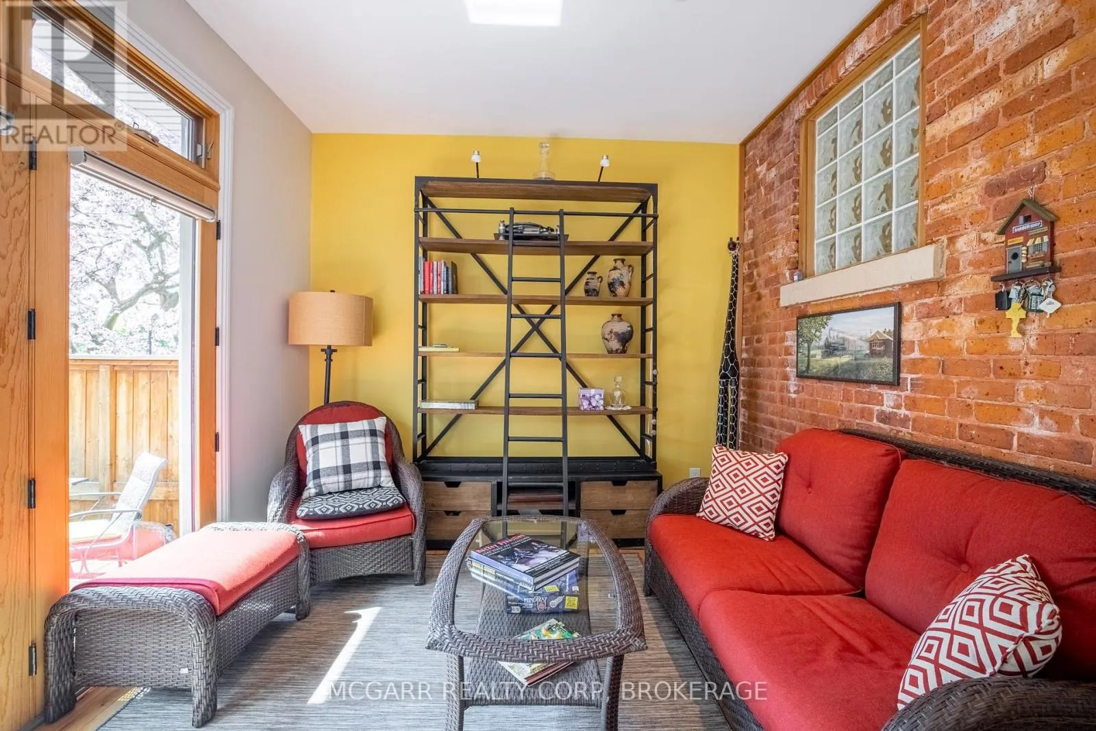 Ontario St., West on College, South on Yates Exceptional, unique and private. One of only 3 Century townhomes on coveted Yates St., each with private gardens and entrances. #64 features a large front deck with gas outlet and beautiful private garden views. The entry room features a brick wall and Quebec maple floors flowing throughout. The living area boasts high ceilings with a 14" wood beam and a large front window allowing a very open feeling. The open kitchen and dining is perfect for entertaining. Two large windows and a unique chandelier lightens it all up. The rich maple cabinets compliment the granite counters and tile backsplash. A bar feature, gas stove with grill, microwave, dishwasher and fridge stay. A 2pc is just before the back door opening to the fenced yard with patio, garden shed and 2 parking spots. The upper level has the laundry room with sink, washer and dryer, and window. The large primary features brick and glass block walls and large walk in closet with built in drawers. The primary has a 3pc ensuite with vaulted ceiling, large windows, heated marble floors and towel rack, jetted shower with 2 shower heads. The 4pc has a soaker tub and a large glass shower. A second queen size bedroom has a closet and large window. The lower level has 2 windows, a secret wine cellar and a state of the art on demand gas boiler system plus in floor gas water heating. Truly a fun, unique and outstanding place to call home. (id:27476)
