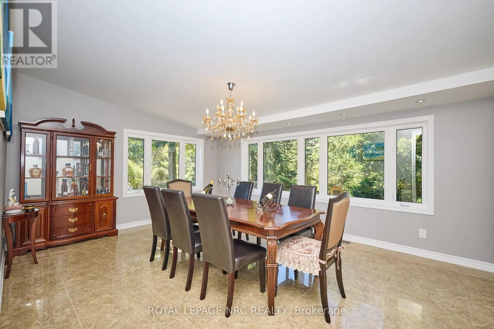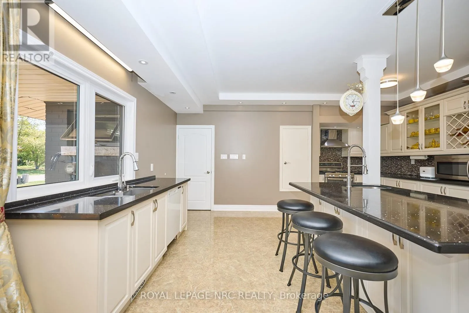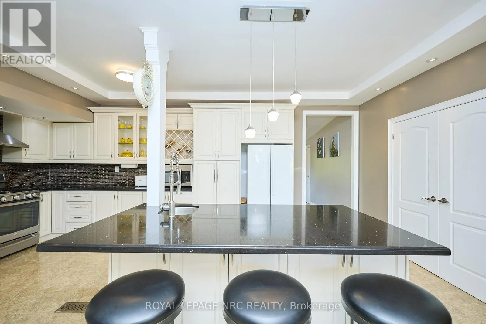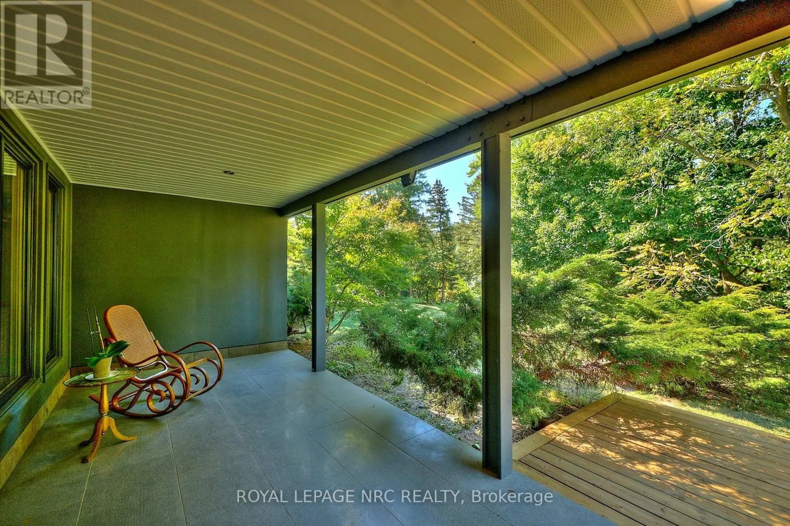 Cross Streets: St. David's Road and Burleigh Hill Dr. ** Directions: St. David's Road to Woodmount Dr. A rare ravine-view gem nestled on a 140x255 ft lot (approximately 0.7 acres) in one of St. Catharines most peaceful enclaves. This spacious 2,100 sq ft bungalow combines timeless comfort with modern updates and offers exceptional privacy with no rear neighbours.The exterior was beautifully refreshed in 2025, featuring a new front deck and porch, striking vertical composite panels with a natural wood look paired with classic brick, and tasteful landscaping that frames the home in greenery. The front sitting area is perfect for morning coffee, surrounded by mature shrubs and set on a quiet, low-traffic street.Inside, an open and inviting layout welcomes you. The living room flows seamlessly to a large covered deck overlooking the ravine an ideal setting for relaxation or entertaining. The generous kitchen offers ample workspace, an additional prep area with sink, and the kitchen connects to a formal dining room with scenic views. A convenient two-piece powder room is located near the kitchen and side entrance.The main-floor bedroom wing includes three spacious bedrooms. The primary suite offers abundant closet space, a 4-piece ensuite, a versatile sitting or office area, and serene views of the ravine. A second 4-piece bathroom completes this wing.The lower level features a separate entrance, providing flexibility for extended family or guests. The basement includes a large laundry and storage area, a 3-piece bathroom, an oversized bedroom, media room, and a comfortable recreation space.Interior renovations were completed between 2015 and 2017 with quality finishes throughout, complemented by the 2025 exterior updates. The property includes an attached double-car garage and an expansive driveway that can accommodate 68 vehicles.A true sanctuary minutes from Highway 406, Brock University, shopping, restaurants, and all city conveniences 7 Woodmount Drive offers space, style, and serenity in one of St. Catharines most coveted settings. (id:27476)