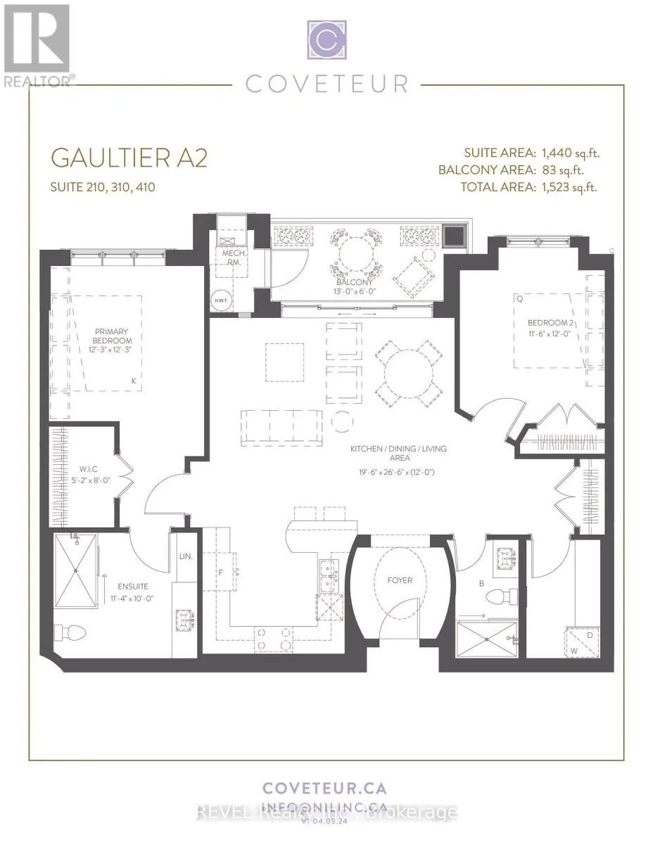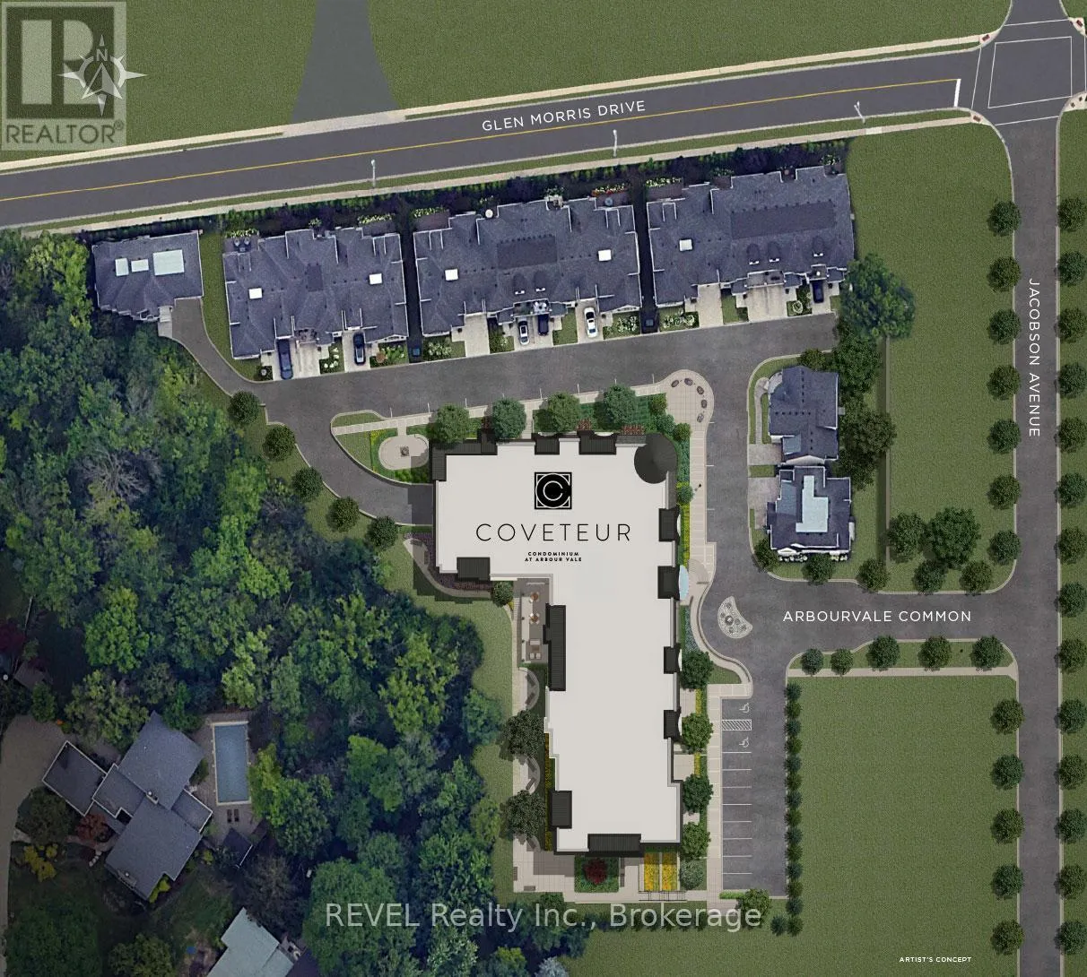 Glen Morris to Jacobson to Arbourvale Welcome to The Gaultier A2 at Coveteur, Niagara's newest address for luxury living. This stunning fourth-floor suite offers 1,457 sq. ft. of beautifully finished living space with 2 spacious bedrooms and captivating West-facing views of the surrounding natural scenery. Designed for modern elegance, this open-concept suite features 10-ft ceilings, 8-ft doors, and an architecturally distinctive circular foyer. Personalize your home with one of four curated designer decor stylesParisian, Scandinavian Chic, New York Loft, or European Traveller each crafted for timeless sophistication. The kitchen boasts designer cabinetry with crown moulding, quartz countertops, a tile backsplash, and an eat-in island perfect for entertaining. Enjoy year-round comfort with an Echobee smart thermostat and an individual high-efficiency MagicPak system with fresh air ventilation. Elegant three-pane sliding doors open to a private balcony offering serene views. Building amenities include a landscaped outdoor terrace, party room with kitchen, library and lounge with two-sided fireplace, and a fitness and yoga studio. One underground parking space and locker included. Built strong with Insulated Concrete Forms (ICF) for superior quality and energy efficiency. Construction is underway with occupancy expected Fall 2026. Visit www.coveteur.ca for floorplans and more details. (id:27476)
