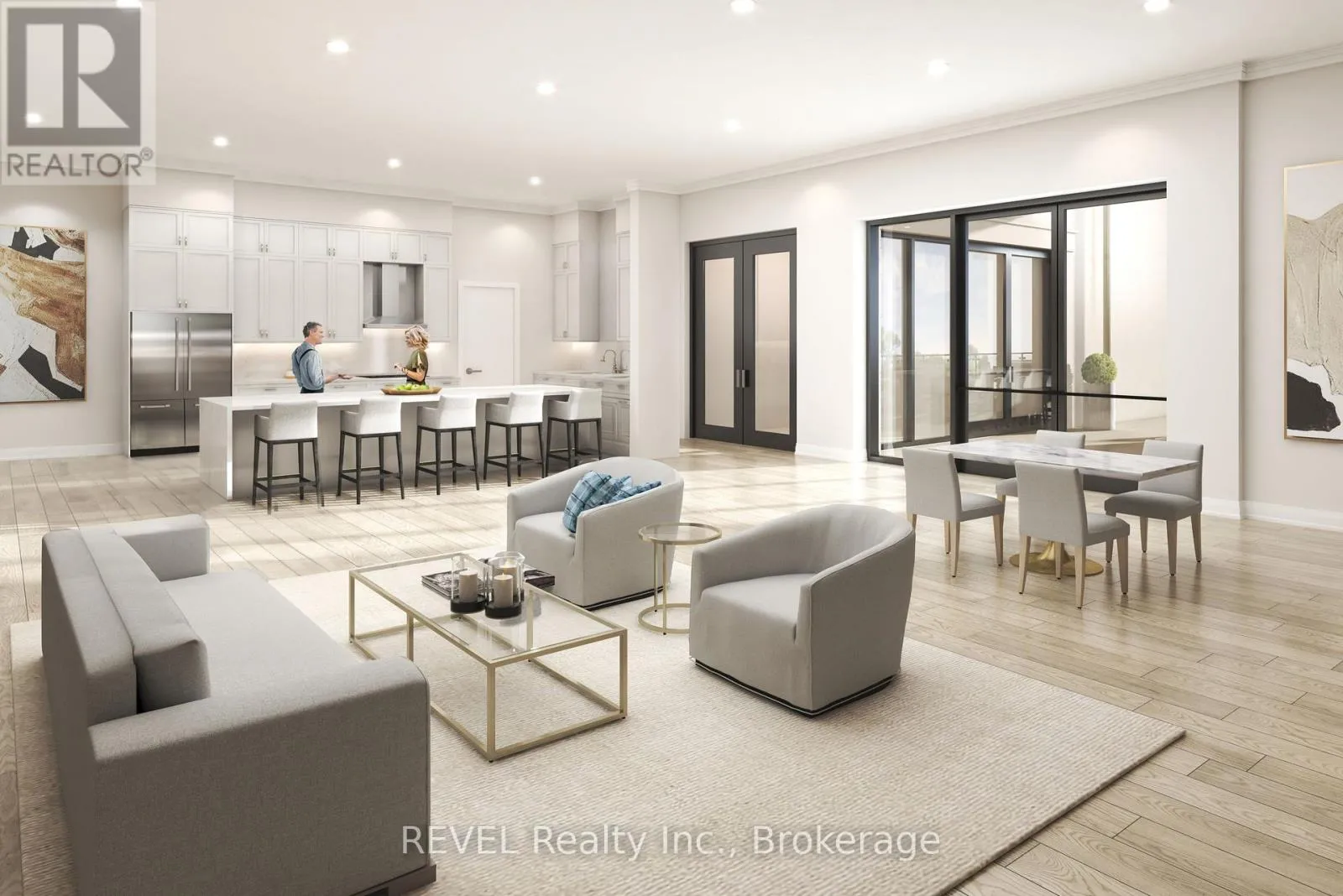 Cross Streets: Glen Morris to Jacobson to Arbourvale. ** Directions: Glen Morris to Jacobson to Arbourvale Common. Welcome to Coveteur . A New Standard of Luxury Living.This exclusive 4-storey condominium offers 41 luxury suites, with occupancy expected in Fall 2026. Spacious open-concept layouts feature 10-foot ceilings, 8-foot doors, and an architecturally distinctive circular foyer design. Choose from four professionally curated décor themes Parisian, Scandinavian Chic, New York Loft, or European Traveller to personalize your suite with style and sophistication. Enjoy balcony or terrace access through elegant three-panel sliding doors. Each suite includes an Ecobee smart thermostat, individual high-efficiency MagicPak system, and fresh air ventilation for optimal comfort and indoor air quality.The designer kitchen offers custom cabinetry with crown moulding, quartz countertops, tile backsplash, and an eat-in island (as per plan). Building amenities include a landscaped ground-floor terrace with valley views, a stylish party room with kitchen and bath, a designer lounge with two-sided fireplace adjacent to the library, and a well-equipped fitness and yoga studio. Comes with 1 underground parking spot and locker. All parking spaces are roughed-in for a car lift and EV charger (available at an additional cost). Built strong with Insulated Concrete Forms (ICF) for superior durability and efficiency. Visit www.coveteur.ca for floorplans and full project details. (id:27476)