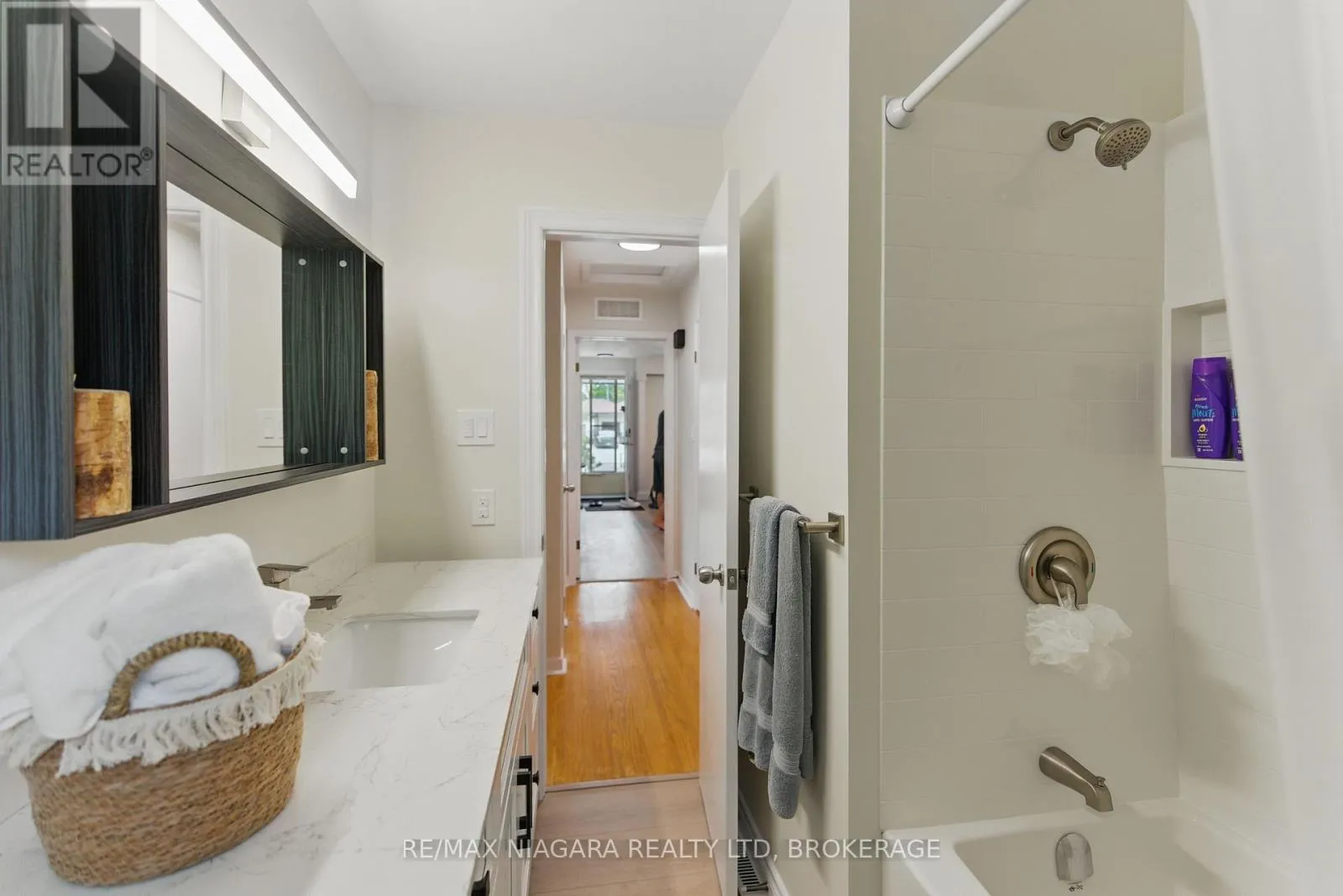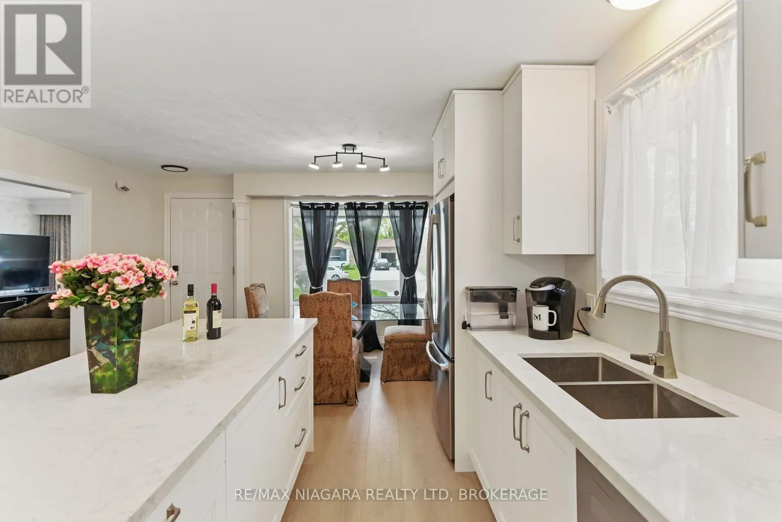 Cross Streets: OFF VINE BETWEEN SCOTT AND LINWELL. ** Directions: From Niagara St, left on Sunrise Dr, left on Regent Drive. Discover your sanctuary in this newly updated 1186 sq ft Bungalow nestled in the sought-after north end of St. Catharines, right here in the heart of Niagara Region. Tucked away on a serene cul-de-sac and bordering the tranquil Walker Creek Trail - with backyard access, this home is a rare find indeed. Step inside to find a kitchen transformed in 2025 with new cabinets, a sleek island topped with quartz counters, and updated vinyl flooring, perfectly complementing the stainless-steel appliances; including a dishwasher (2025). The main floor washroom also in 2025, received a stunning makeover, boasting fresh vinyl flooring, a stylish vanity, a luxurious soaker tub, and updated fixtures. Recent updates extend throughout the property, ensuring comfort and efficiency. A new R7 insulated garage door (2025), refreshed basement bathroom (2025), and a concrete driveway (2024) enhance convenience and curb appeal. Inside, updates continue with basement finishes (2024) and commercial-grade laminate flooring (2024). Essential upgrades like a Trane Furnace (2022), Air Conditioner (2022) - Furnace & A/C, and Roof (2021) - roof warranty transferable to Buyer within 30 days, Soffits & Fascia (2021) provide peace of mind and reliability. Don't miss your chance to call this meticulously maintained home yours where modern comfort meets natural beauty in a prime Niagara location. (id:27476)