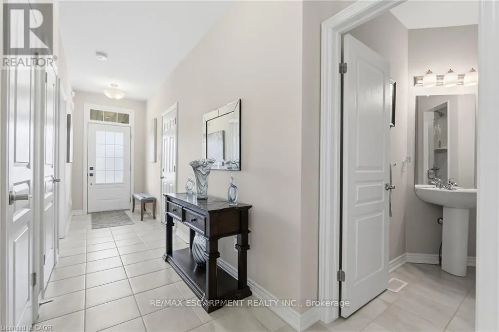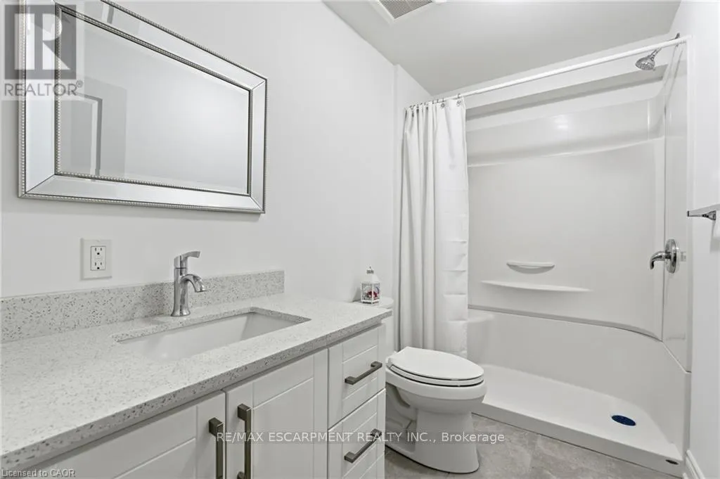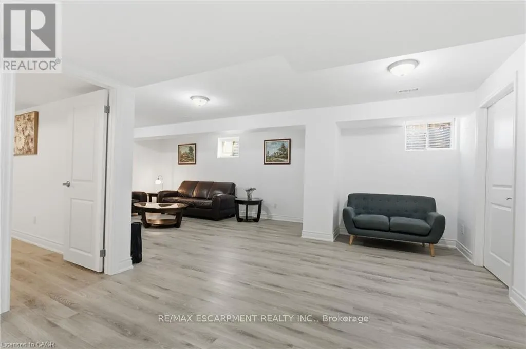 Cross Streets: Oakdale Avenue. ** Directions: Merritt Street Oakdale Avenue Ellis Avenue. This freehold (no condo fees) bungalow townhome is located in the peaceful and exclusive community of Merritton Commons. This end-unit offers additional space, privacy, and natural light due to its position and extra-wide lot. Joined only at the garage, there is access to the backyard from the garage, sliding doors in the living room, and a side gate. The wrap-around front porch leads into an open-concept layout with 9-foot ceilings, a gas fireplace, and oversized windows. The living and dining areas are wider than standard interior units, providing ample space for both entertaining and daily living. The kitchen features granite countertops, generous storage, and an eat-in breakfast bar. The main floor includes two bedrooms and two bathrooms, with an additional bedroom, den, family room, and bathroom located in the finished lower level. The lower level also includes an unfinished workshop/utility area and a large cold cellar beneath the wrap-around porch for storage. The property is professionally landscaped and well-maintained, reflecting pride of ownership throughout. (id:27476)
