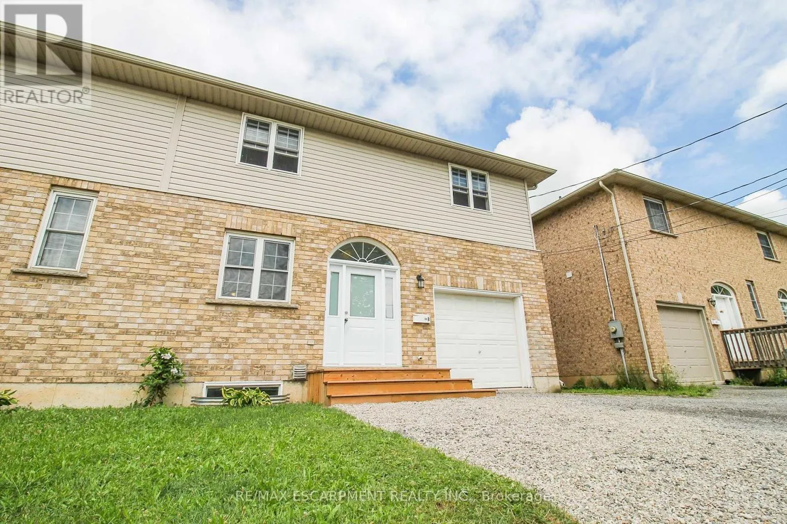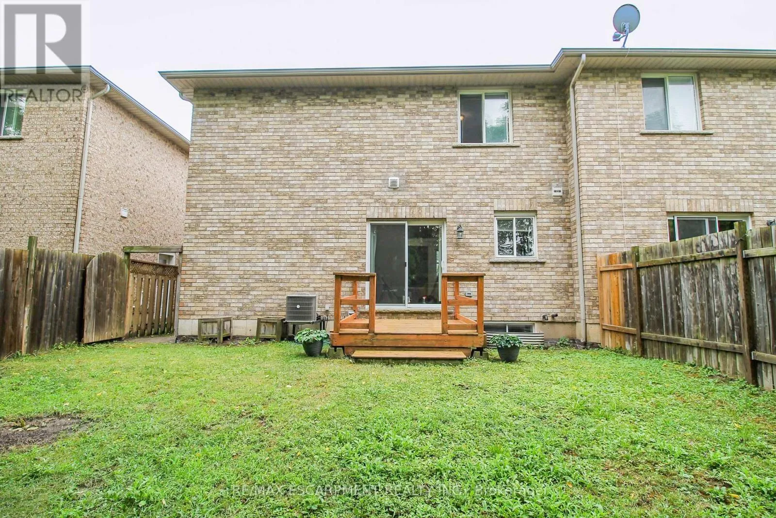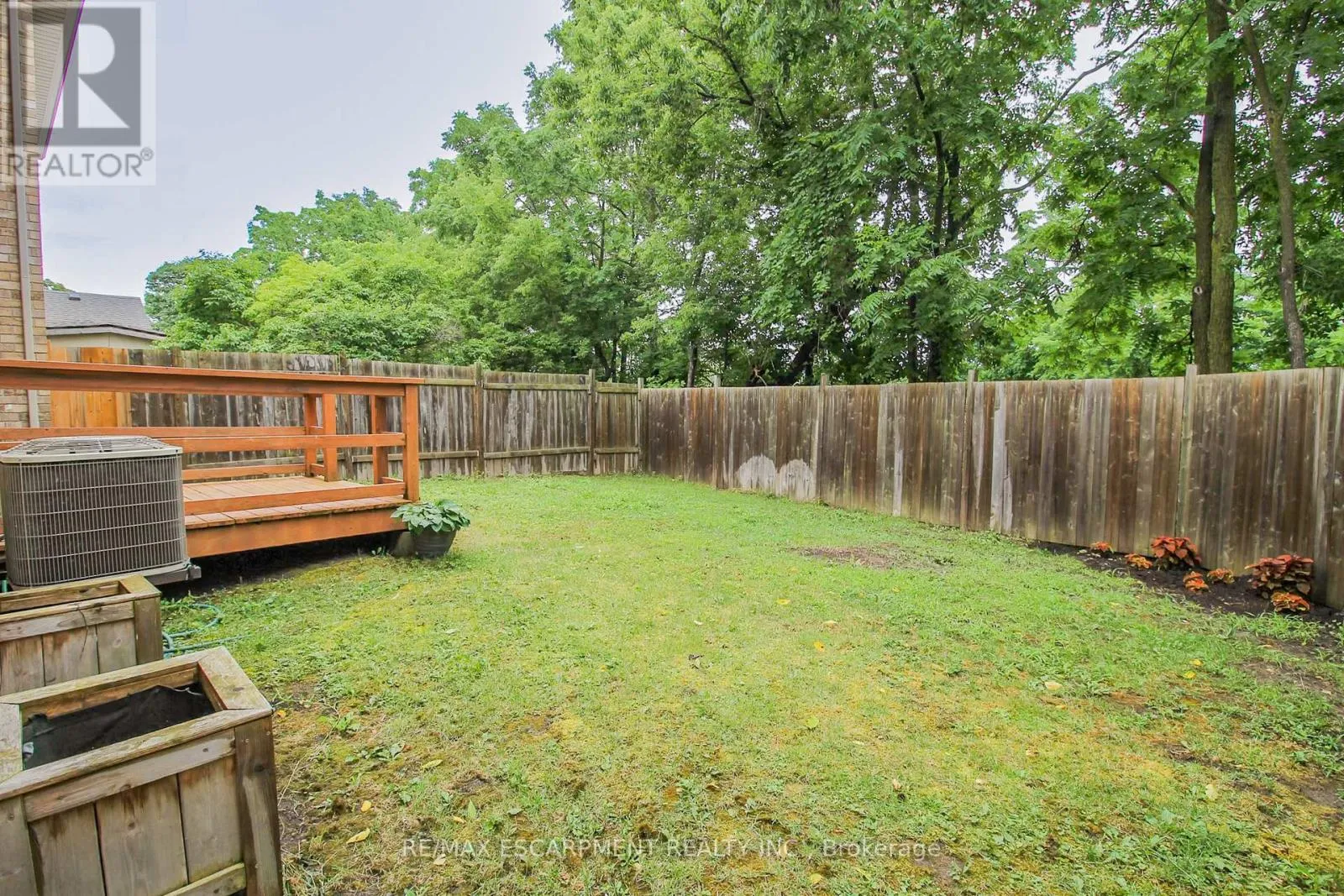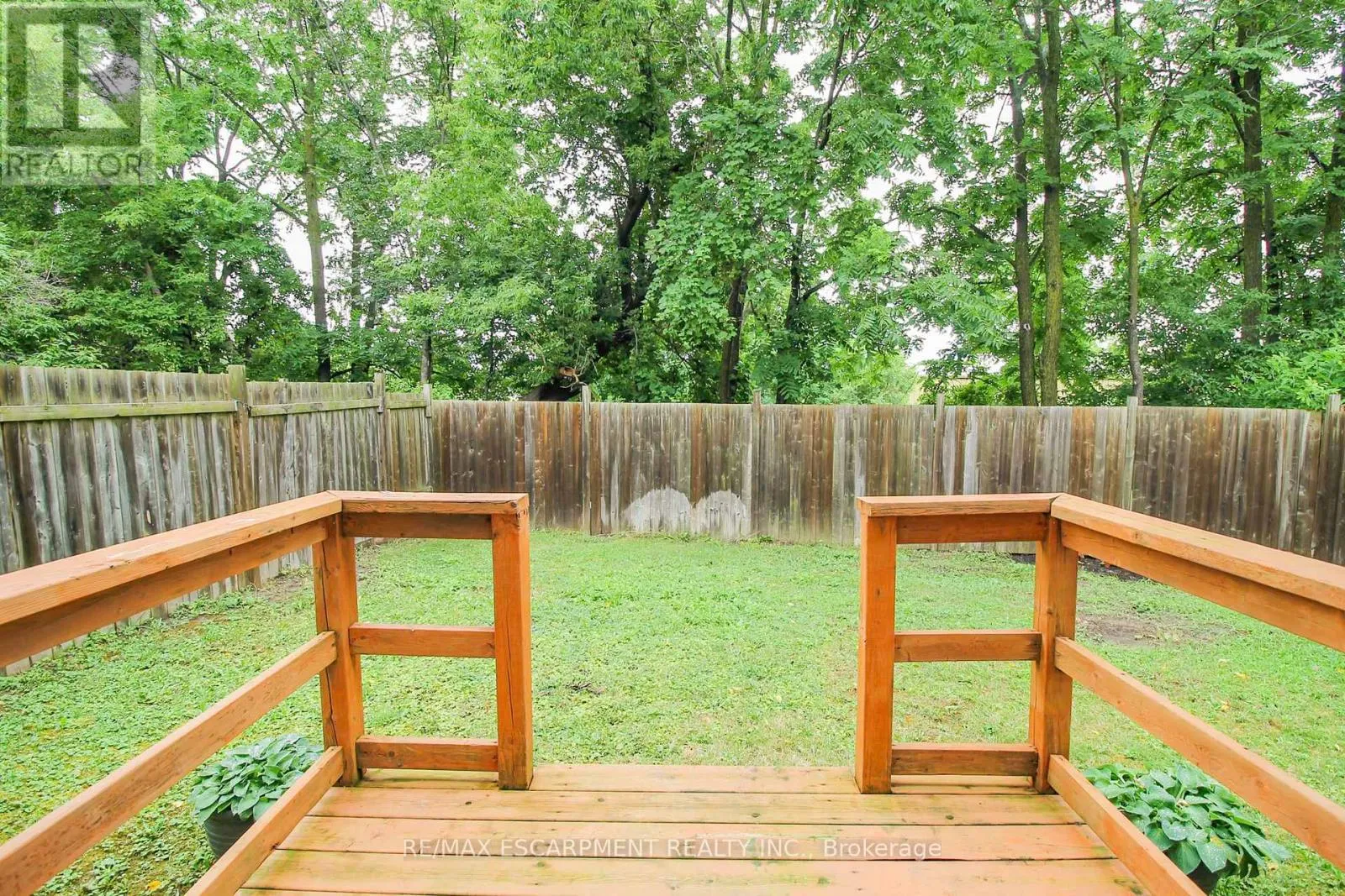 Merritt Street Bright 2-storey semi in desirable Secord Woods! Close to schools, parks, shopping, and transit. Large lot with no rear neighbours and mature trees for privacy. Open-concept main floor with deck walkout and 2-piece bath. Three bedrooms up plus finished basement with 4th bedroom/rec room and ensuite. Updates include A/C (2016), carpet & paint (2024), front door (2023). Garage, double drive, fenced yard. (id:27476)