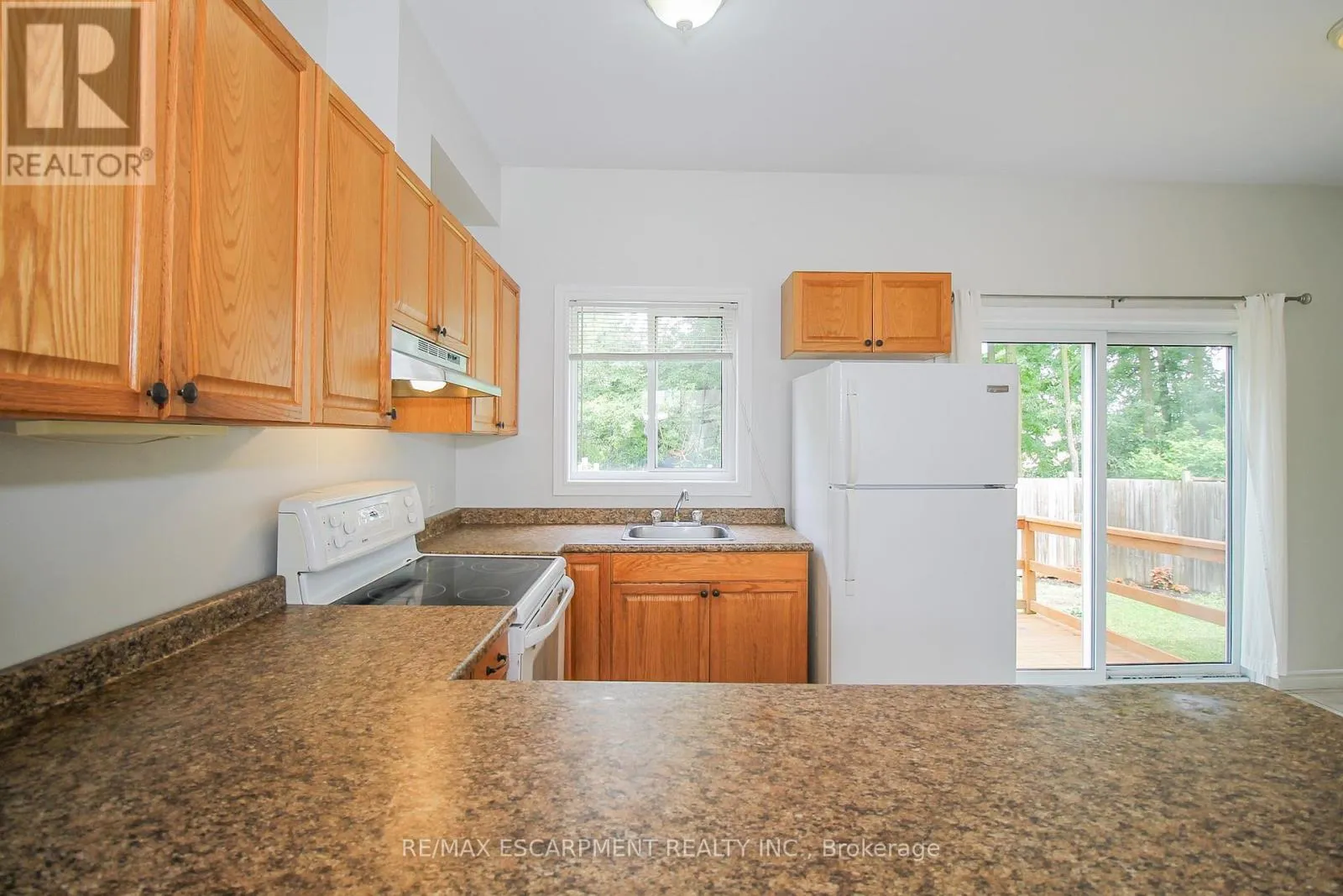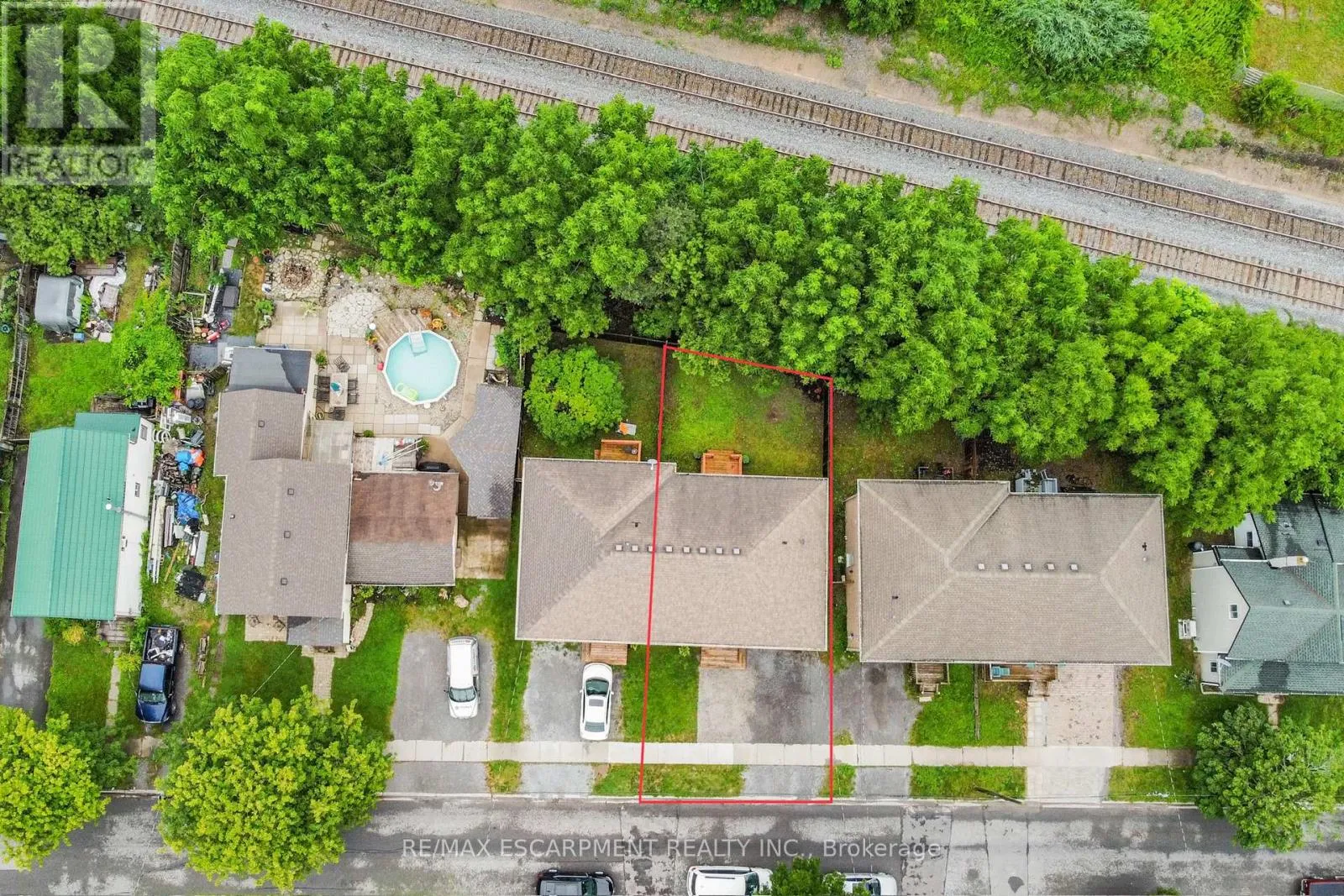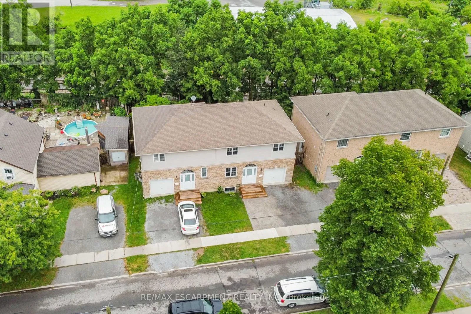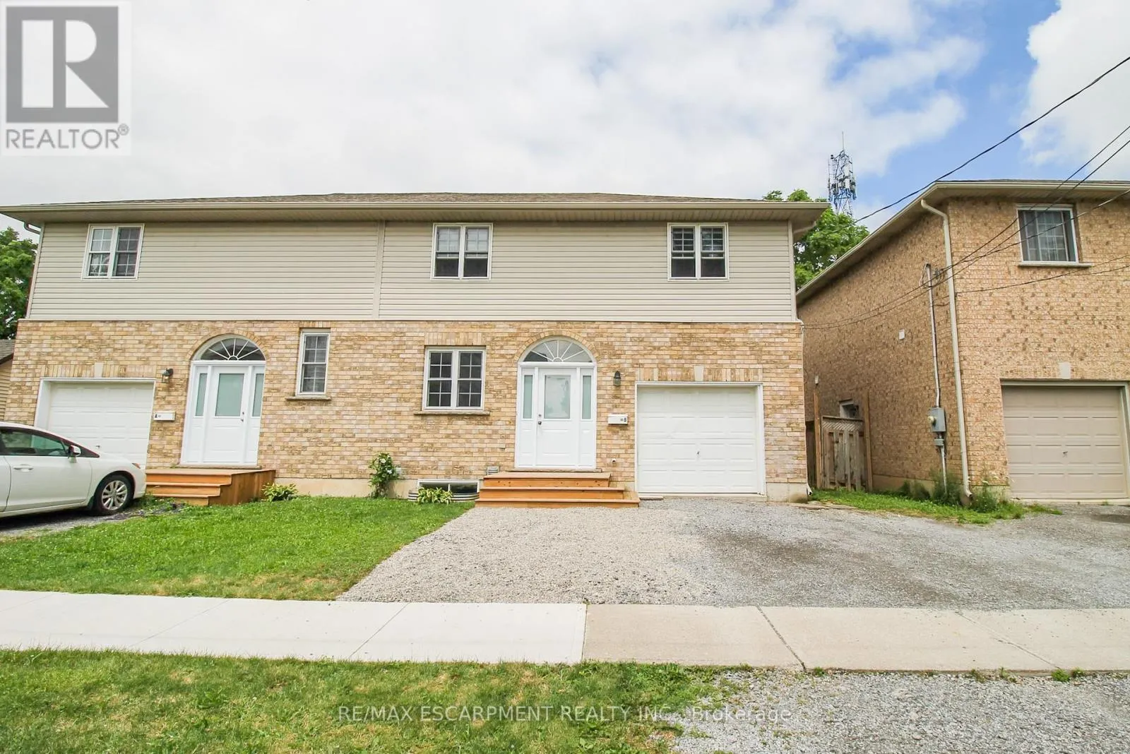 Merritt Street Bright 2-storey semi in desirable Secord Woods! Close to schools, parks, shopping, and transit. Large lot with no rear neighbours and mature trees for privacy. Open-concept main floor with deck walkout and 2-piece bath. Three bedrooms up plus finished basement with 4th bedroom/rec room and ensuite. Updates include A/C (2016), carpet & paint (2024), front door (2023). Garage, double drive, fenced yard. (id:27476)