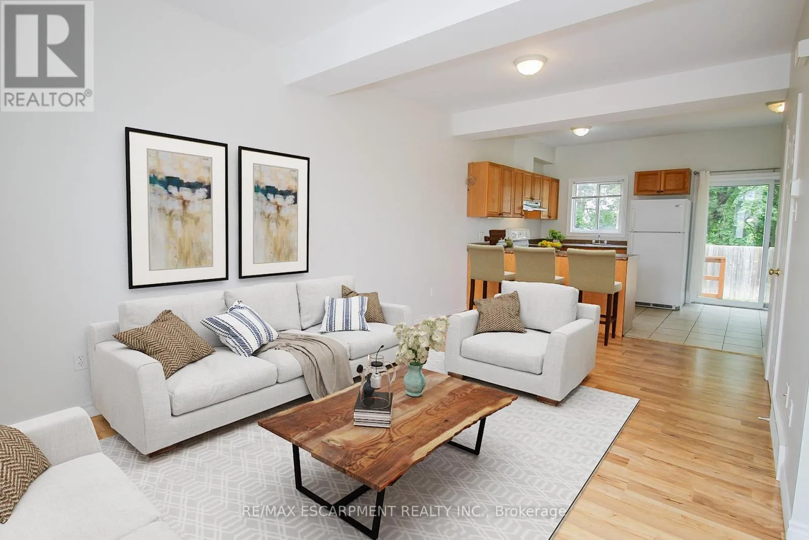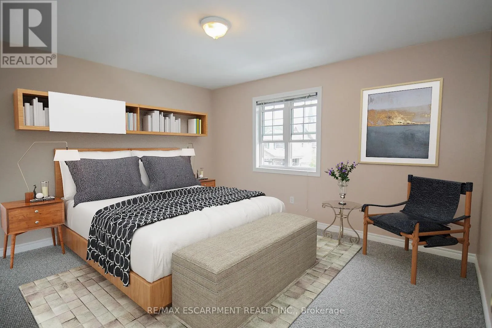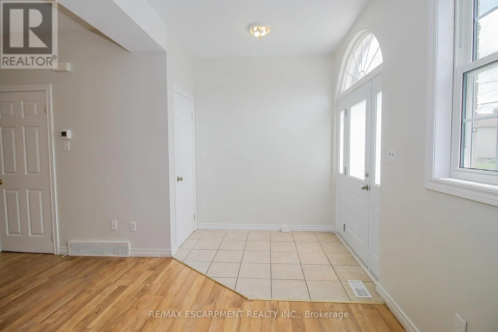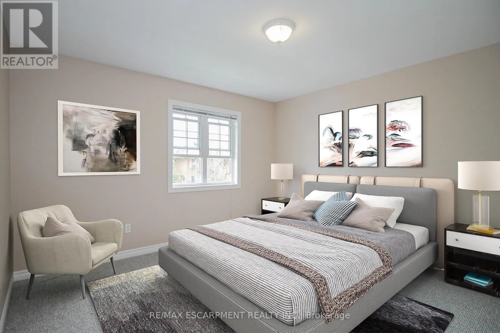 Merritt Street Bright 2-storey semi in desirable Secord Woods! Close to schools, parks, shopping, and transit. Large lot with no rear neighbours and mature trees for privacy. Open-concept main floor with deck walkout and 2-piece bath. Three bedrooms up plus finished basement with 4th bedroom/rec room and ensuite. Updates include A/C (2016), carpet & paint (2024), front door (2023). Garage, double drive, fenced yard. (id:27476)