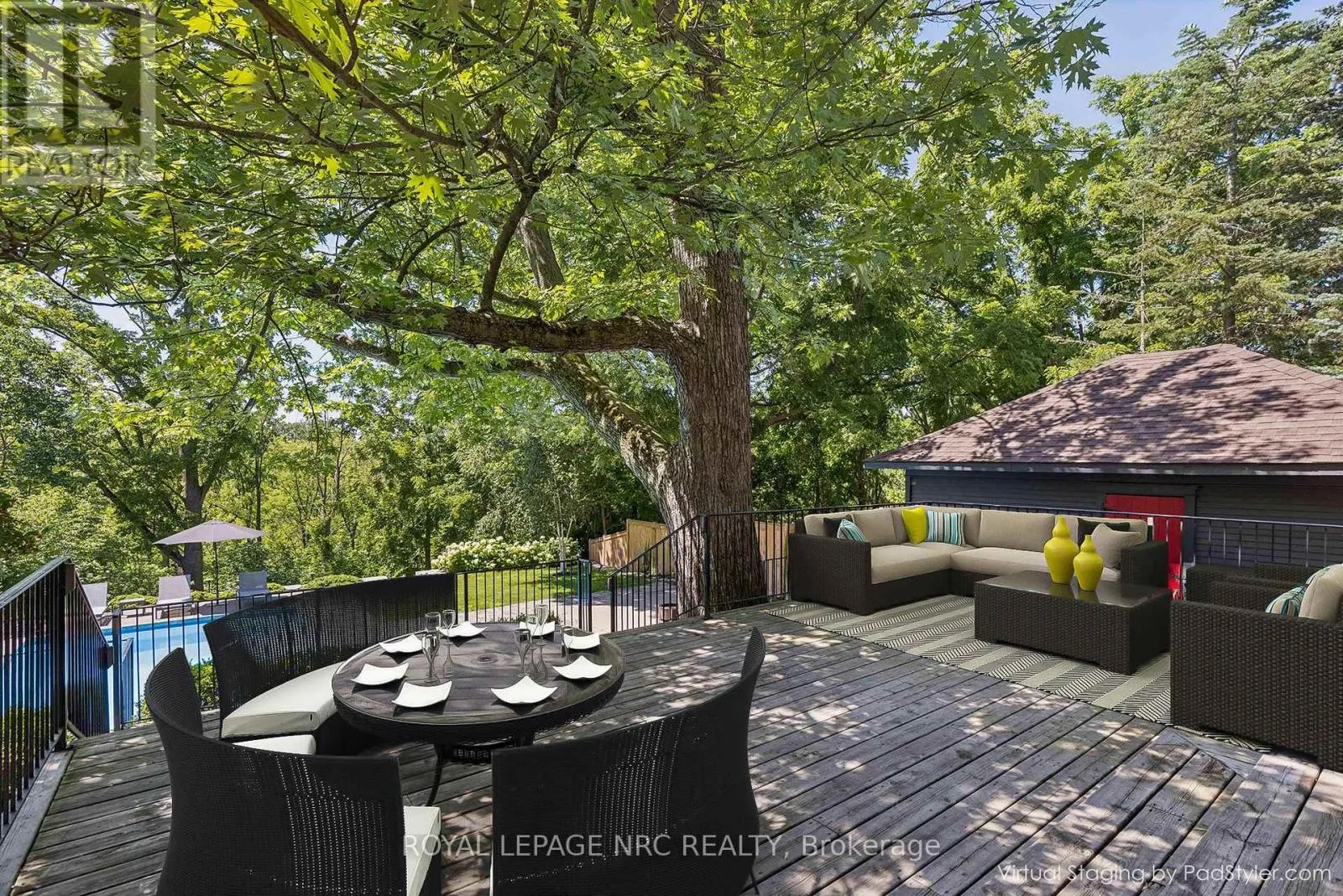 Cross Streets: Rockcliffe Road. ** Directions: Glenridge Avenue, west on Rockcliffe Road, north on Hillcrest Avenue. STUNNING 2.5 storey Executive residence in sought after Old Glenridge, has WOW factor inside and out! Beautifully updated throughout with high quality custom finishes and luxurious design details. This absolutely gorgeous "like new" home situated on a scenic ravine lot with breathtaking nature and WATER VIEWS features Open concept Chef's kitchen with 10 ft. island w/marble, high end appliances, caesarstone counters, walk out to huge deck overlooking outstanding scenic ravine yard. New wide plank white oak hardwood flooring and custom lighting throughout. Enjoy your own personal resort-like oasis with inground heated pool, gorgeous landscaping, landscape lighting and extensive hardscape on 3 tiers. Large Livingroom w/bay window, gas fireplace with custom mantle surround. 3 spacious bedrooms and 2 full baths, including Primary bedroom w/vaulted ceiling, large ensuite w/heated flrs, glass shower. Mono beam steel floating stairs installed with 3 3/4 inch solid wood treads and custom glass wall on staircase leading to 3rd floor. Newly finished Recroom and office/exercise space in basement, large laundry room Loft/Studio provides additional multi-function space for home office, recreation, exercise, craft or painting gallery. Complete HVAC update, new ductwork, high efficiency furnace and AC units. Large paved area on pool level has been roughed in for electric, gas and water for future pool house. (plans available). Excellent location close to vibrant downtown, Performing Arts Centre, Meridian Arena, QEW, 406, Brock U, Ridley College, Niagara Wine Region, St. Catharines Golf and Country Club, dog park, Hospital, shopping centres, parks, scenic hiking and cycling trails, NOTL, Buffalo, Hamilton and Toronto airports. See supplemental documents for additional list of updates. Live your dream! (id:27476)