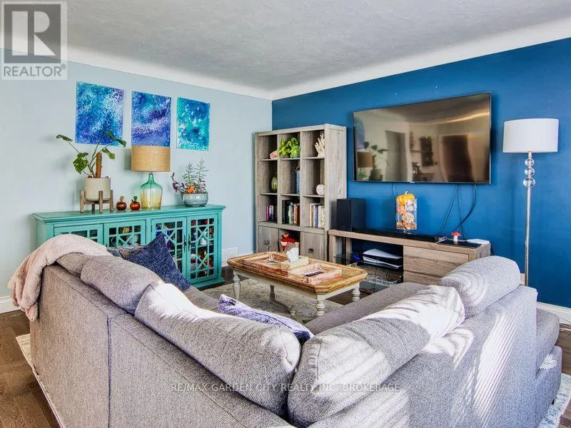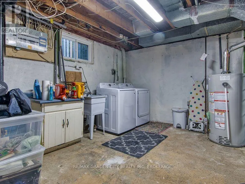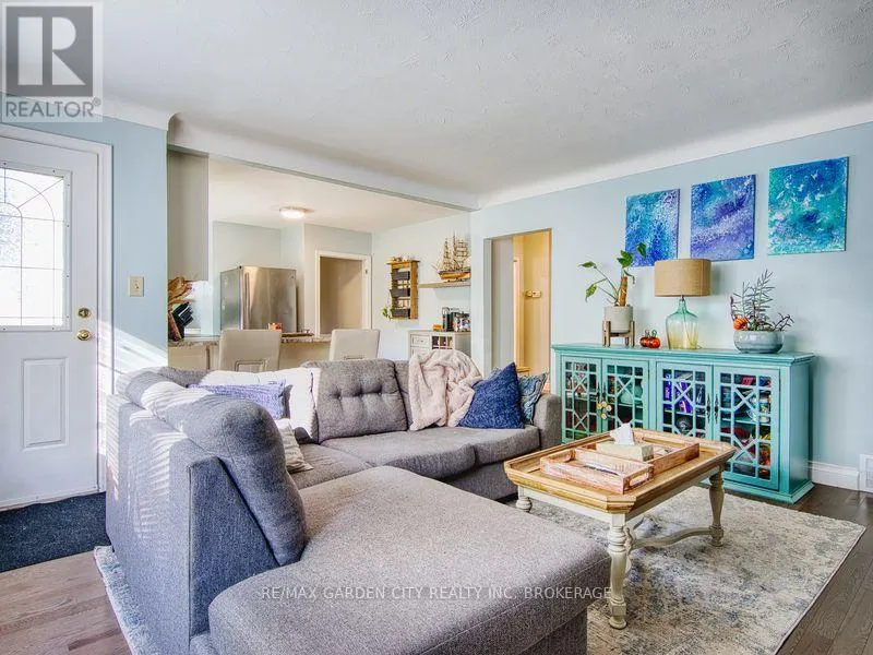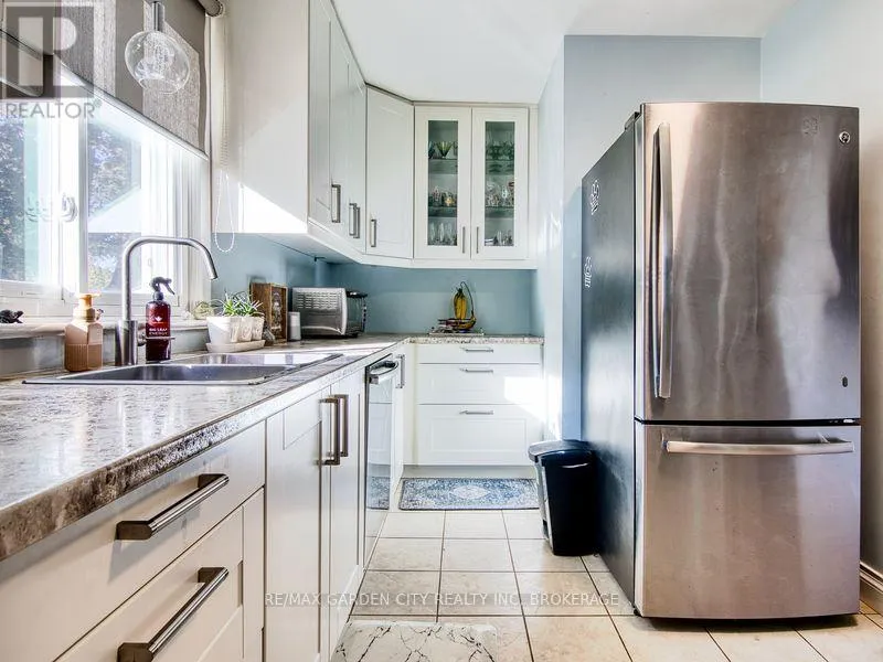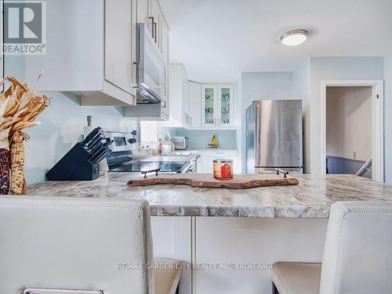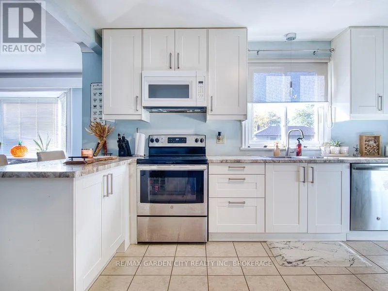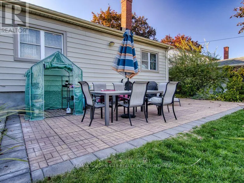 Cross Streets: Scott/Geneva. ** Directions: North on Geneva, then east on Scott then 1st right on Hewko. Northend 1020 SQFT bungalow with detached garage. 135 ft deep lot with fenced yard, shed and large interlock slab patio. 2018 renovated kitchen offers white soft shut cabinet doors and drawers with breakfast counter open to the living room. 2018 hardwood floors in living room, hall and all 3 bedrooms. At the end of the hall there is a large closet that could be for the 3rd bedroom. 2025 updated 4pc bathroom. Full basement has a very large L-shaped recroom/playroom with corner gas fireplace and pot lights. 2025 updated 3pc bathroom. Laundry room area and large storage area are unfinished. There is a window in the storage area that could be used as a future idea to put a 4th bedroom. Lots of vinyl windows, central air, 2014 GAF shingles, 2006 furnace, 100 amp breaker panel. Close to Fairview Mall for shopping. (id:27476)