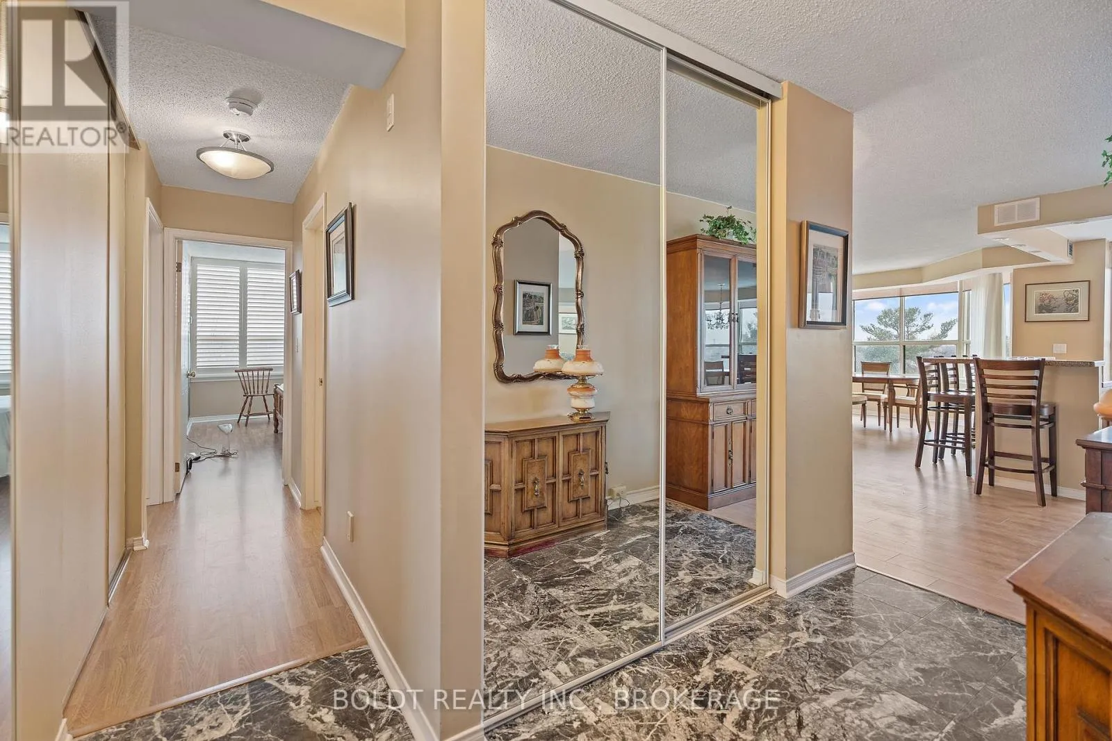 Cross Streets: Glen Morris Drive. ** Directions: Glenridge Ave to Glen Morris Dr to Towering Heights. Welcome to Suite 603 at sought after 3 Towering Heights Boulevard! This spacious 1,425 sq ft corner unit offers modern living at its finest, with two owned parking spots, 2 bedrooms, 2 bathrooms, and a versatile den. Designed with an open-concept layout, the unit is lined with windows, offering scenic views. The updated kitchen flows seamlessly into the dining and living areas, separated only by a massive island with seating for four, perfect for entertaining or relaxing. Just off the main living area, you'll find a den, ideal as a home office, TV room, or peaceful retreat. Beyond the den, step out onto your spacious, covered balcony to enjoy the outdoors in comfort. The unit features laminate flooring throughout, complemented by ceramic tiles in the bathrooms and a marble-finished foyer. No carpets for easy maintenance and a sleek, contemporary aesthetic. The primary bedroom is a luxurious retreat, with dual walk through closets leading to a spacious ensuite bathroom. The 2nd bedroom is generously sized, with a full bathroom conveniently located just outside its door. Additional highlights include a large storage closet and in-suite laundry for ultimate convenience. Enjoy outstanding building amenities, including a pool, whirlpool, sauna, exercise room, 2 outdoor BBQ areas, lounge, hobby room, library, and a billiards & darts lounge. Ideally situated close to shopping, dining, major highways, downtown sports/event centre and the Performing Arts Centre. Ample visitor parking. PET FREE BUILDING. This condo offers everything you need for a vibrant and convenient lifestyle! (id:27476)