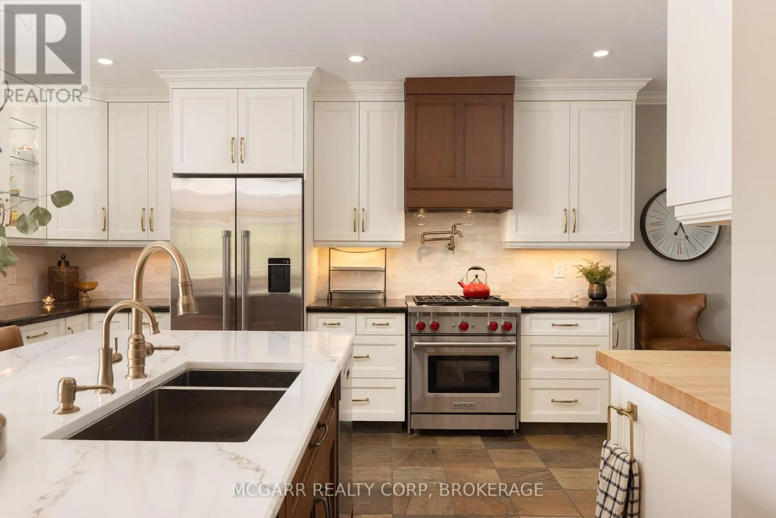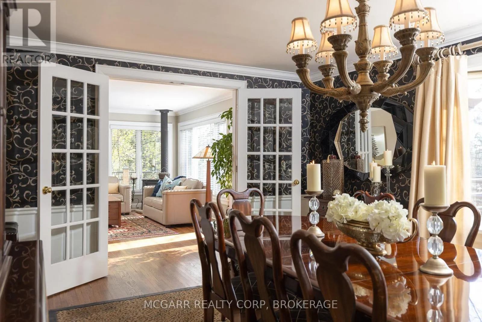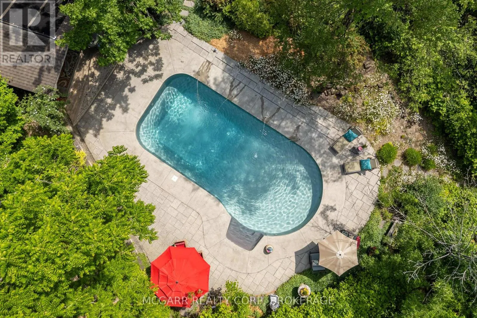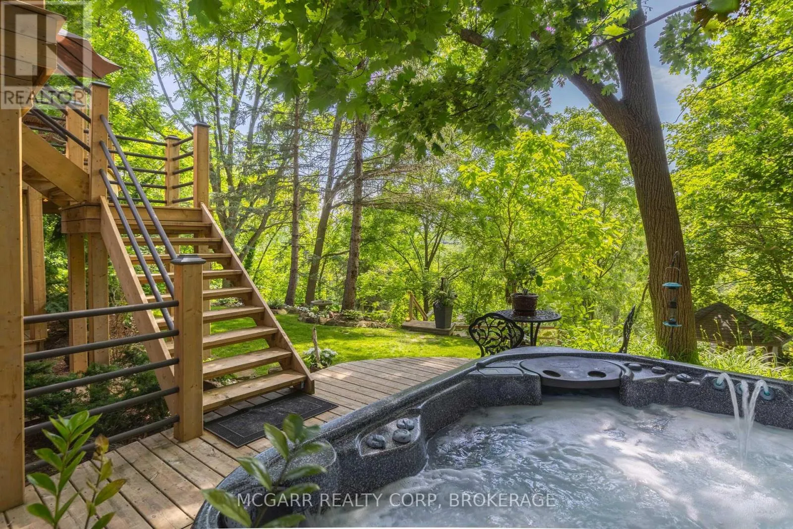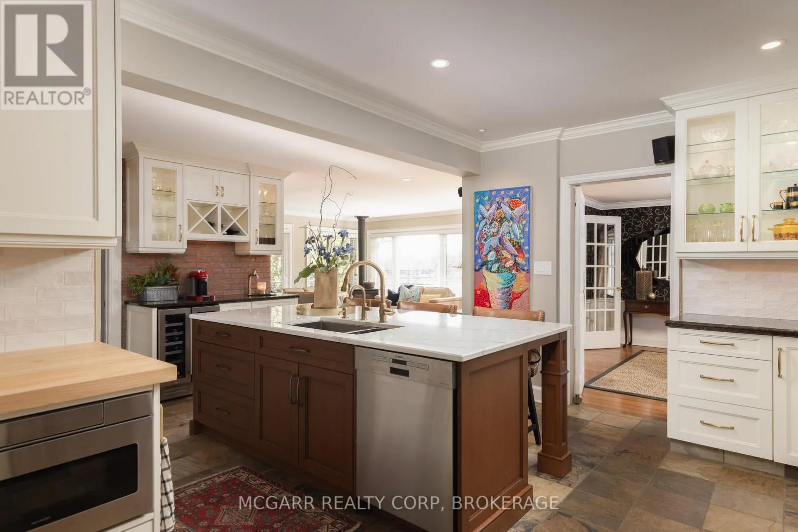 Rockcliffe/Glenridge This home has it all. Location, space, property, privacy and a true staycation feel. Entertaining bright living room with fireplace and leads to a light filled library. The formal dining room views the stunning backyard. Enjoy the warming fireplace in the family room or walk out to the two level deck with ground access. The updated kitchen with slate floor has a large island with sink plus there is a bar with a sink and wine fridge. The custom Birchview Cabinetry blends with the Bosch Dishwasher, Fisher Paykel fridge, and Wolf 4 burner gas stove. A mudroom, 2pc and a back stairway finishes the main level. The elegant front oak stairway leads to the upper level where you will find 5 bedrooms, 3 bathrooms and the laundry room. The primary suite has ravine views, gas fireplace, walk in closet and a sitting room. The 5 pc ensuite has 2 sinks, soaker tub and large glass shower. A 4pc and a 3pc services the other 4 bedrooms. The ground level has lots of storage space, 2 walkouts, rec room, and office with a fireplace. The very private terraced yard makes you feel like you are in Muskoka. Enjoy the soothing hot tub, decks, perennial gardens, in ground salt water and solar heated pool, fantastic fully equipped pool house bar with its own 2pc. A home to live in, play in and grow in. This home is perfect for a blended family who also want to have lots of space for privacy. Very spacious deck leading down to a 6 person hot tub and super private hidden alcove area for curling up. Party in the stunning pool level and gather around the fully equipped tiki bar. Come for a visit and stay for a lifetime. (id:27476)