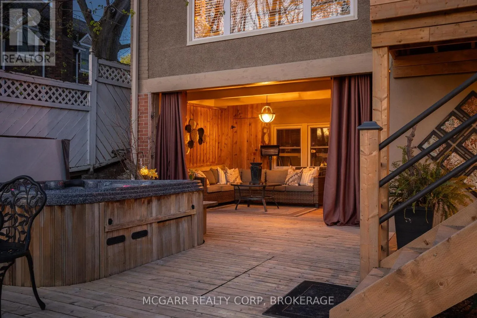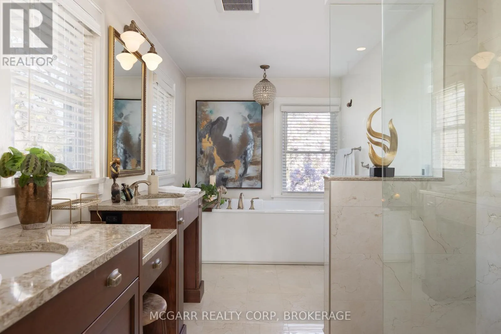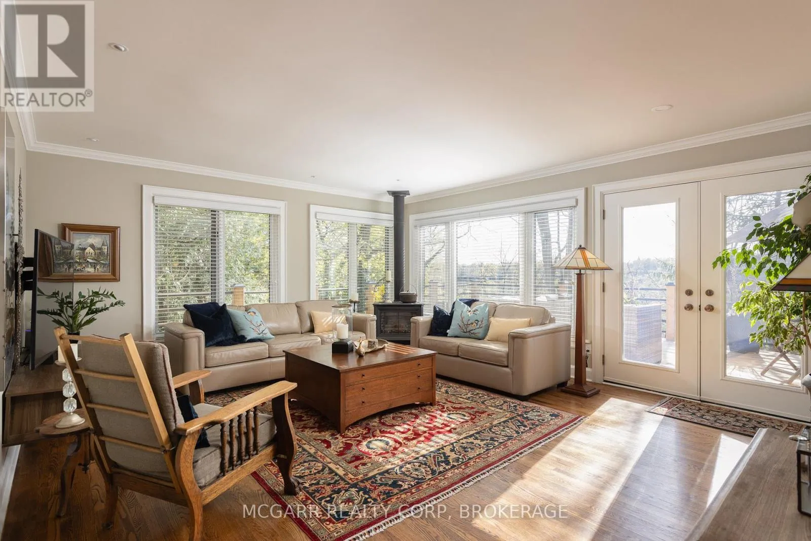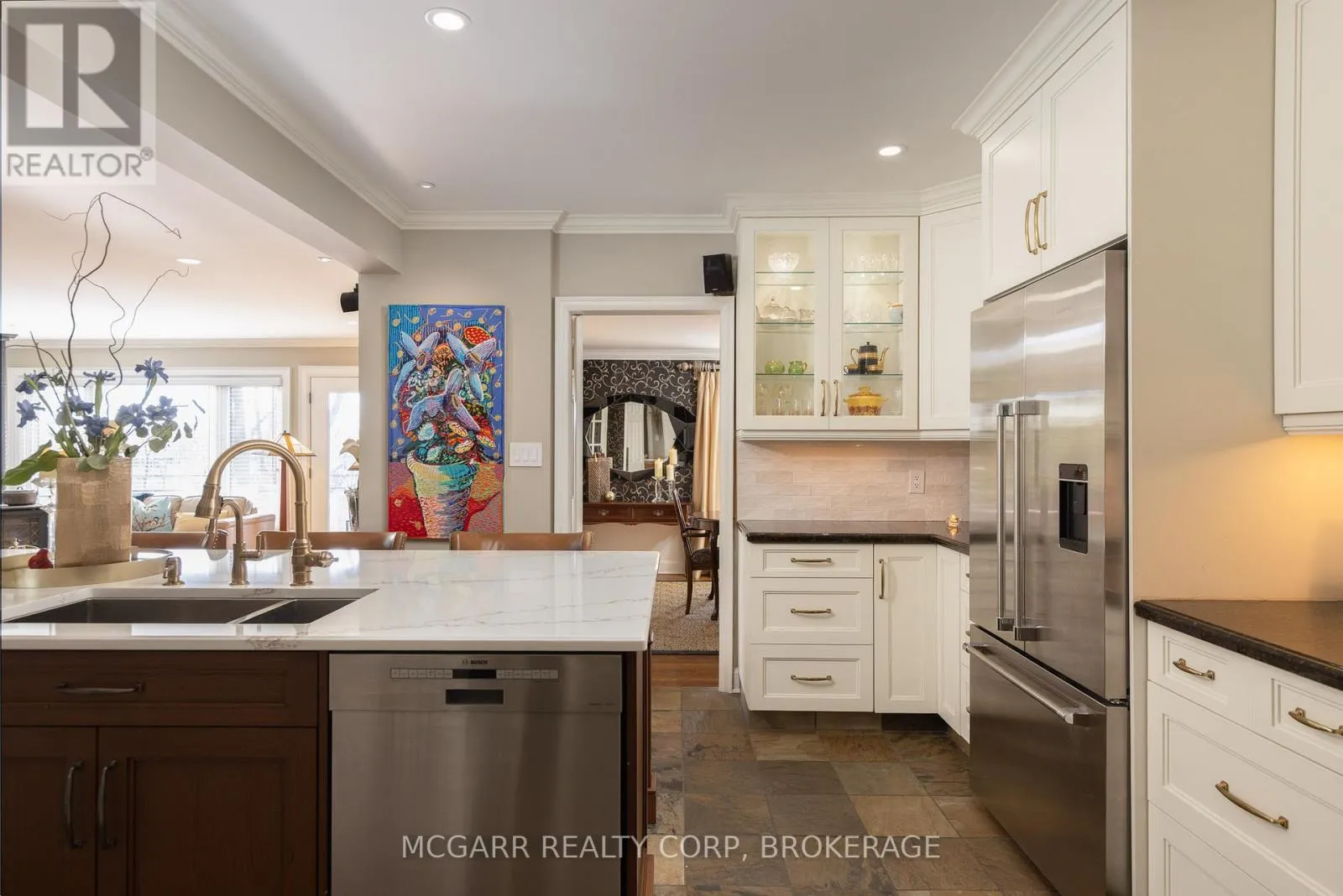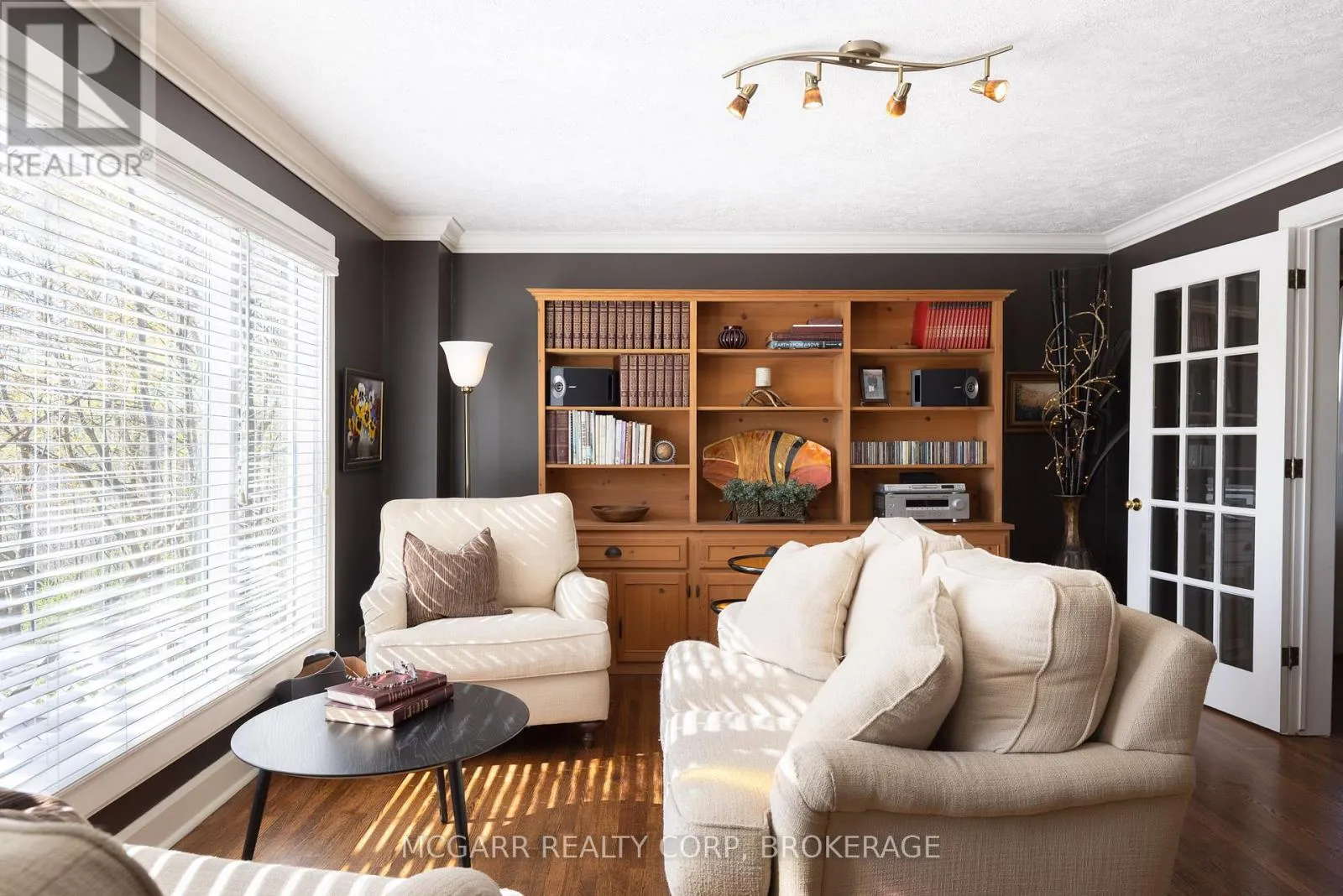 Rockcliffe/Glenridge This home has it all. Location, space, property, privacy and a true staycation feel. Entertaining bright living room with fireplace and leads to a light filled library. The formal dining room views the stunning backyard. Enjoy the warming fireplace in the family room or walk out to the two level deck with ground access. The updated kitchen with slate floor has a large island with sink plus there is a bar with a sink and wine fridge. The custom Birchview Cabinetry blends with the Bosch Dishwasher, Fisher Paykel fridge, and Wolf 4 burner gas stove. A mudroom, 2pc and a back stairway finishes the main level. The elegant front oak stairway leads to the upper level where you will find 5 bedrooms, 3 bathrooms and the laundry room. The primary suite has ravine views, gas fireplace, walk in closet and a sitting room. The 5 pc ensuite has 2 sinks, soaker tub and large glass shower. A 4pc and a 3pc services the other 4 bedrooms. The ground level has lots of storage space, 2 walkouts, rec room, and office with a fireplace. The very private terraced yard makes you feel like you are in Muskoka. Enjoy the soothing hot tub, decks, perennial gardens, in ground salt water and solar heated pool, fantastic fully equipped pool house bar with its own 2pc. A home to live in, play in and grow in. This home is perfect for a blended family who also want to have lots of space for privacy. Very spacious deck leading down to a 6 person hot tub and super private hidden alcove area for curling up. Party in the stunning pool level and gather around the fully equipped tiki bar. Come for a visit and stay for a lifetime. (id:27476)
