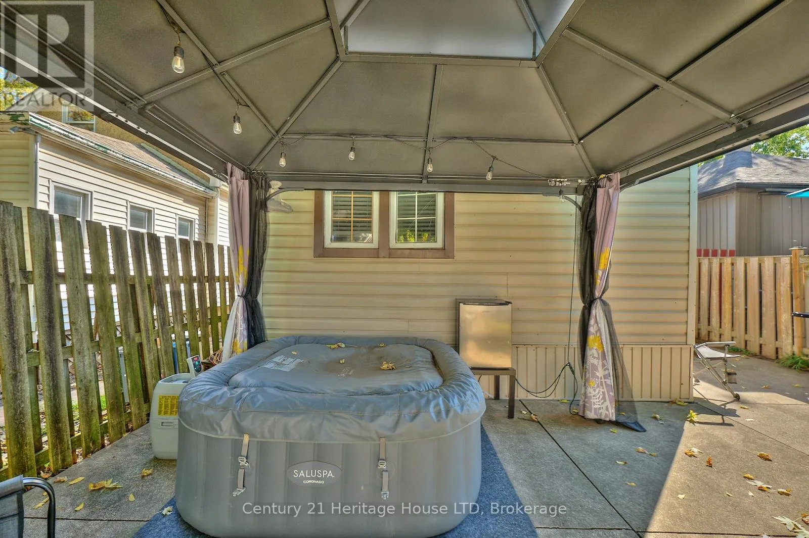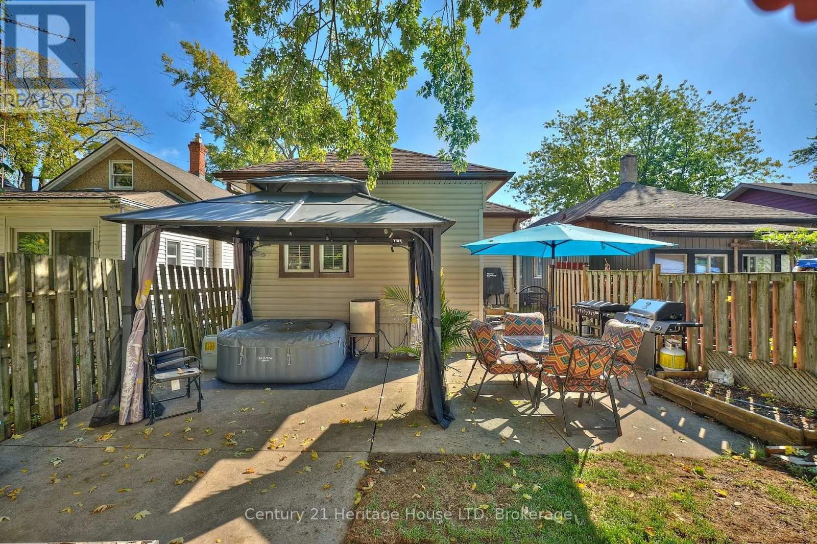 Cross Streets: Welland Ave & Page St. ** Directions: Between Welland Ave and Manning. Cute 3 bedroom, 1 bath Bungalow in convenient location near all amenities including shopping, restaurants, public transit, and quick highway access. Features include a covered front porch, laminate flooring, spacious bedrooms, a large combo living and dining area, an updated 4pc bath with deep soaker tub, and an updated kitchen with modern white cabinetry and plenty of counter space! The private and fully fenced backyard features a good sized concrete patio with gazebo, and large garden shed. Parking for one full size vehicle available on the private concrete pad. Great opportunity for first time home-buyers to get into the market! (id:27476)