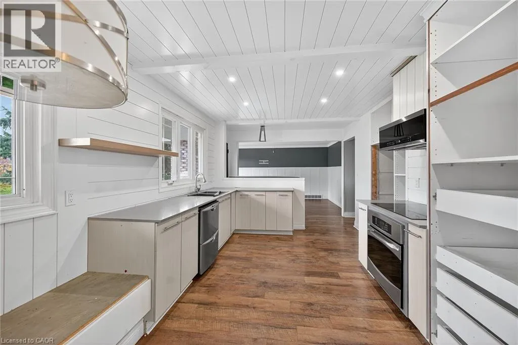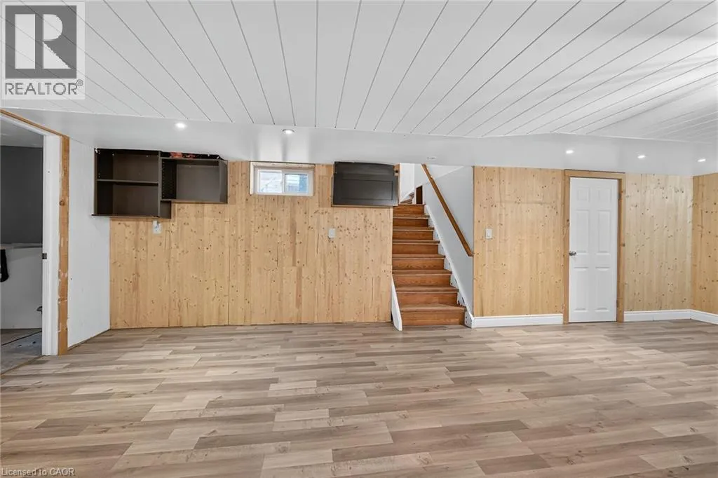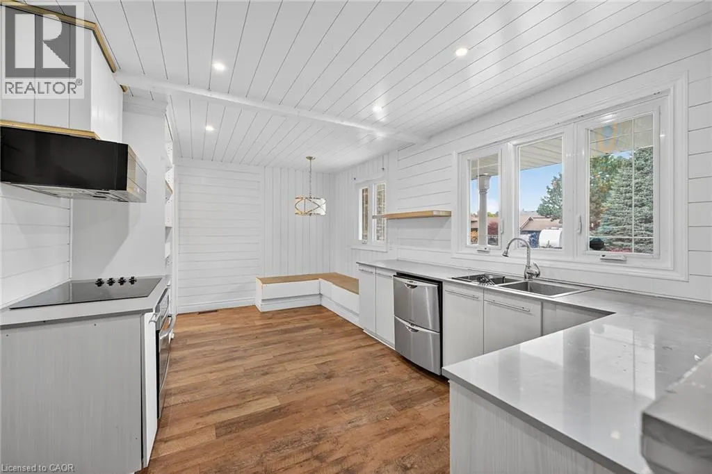 Geneva St to Ted St Tidy 3+1 bedroom 2 bathroom bungalow on huge 74 X 155 lot. This home backs onto St Alfred's Park, no rear neighbors. Spacious principle rooms ideal for the growing family. Main level offers 3 bedrooms and 1 bath. Bright eat in kitchen with abundant cabinetry and quartz counter tops. Stylish updated main bath. The lower level has a separate entrance and would make an excellent in-law apartment. Add a kitchen and the lower level could be used as a private 2 bedroom 1 bath suite for multi generational households. Sprawling, private rear yard with mature tress. Front driveway parking for 2 cars and a single garage. Located in one of St Catharines most desirable locations, wide tree lined streets with easy access to the Lake and to major highways. Don't miss out. (id:27476)