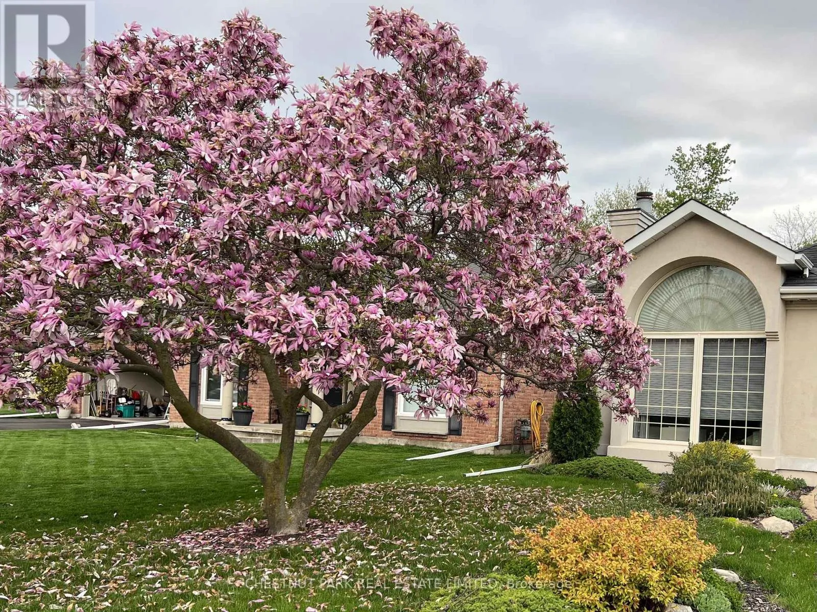 Martindale To Erion A Rare Ravine lot, custom home in Erion Estates, surrounded by mature trees. This bungaloft feels private, peaceful, and grand all at once. From the moment you walk through the front door, the home opens up with 2-story ceilings, large windows, and an abundance of natural light. Designed for easy main-floor living, the layout flows effortlessly with everything you need on one level. The spacious kitchen sits at the back of the home overlooking the ravine, offering a large island and a dining nook surrounded by views of your oasis yard. The family room feels open and inviting with double-height windows framing the treetops with a gas fireplace and has direct access to backyard patio through the siding door. The main floor primary suite is a true retreat featuring two walk-in closets and a generous ensuite with double sinks, a jetted tub, and shower. You also find a formal dining area, a bright living room with a wood-burning fireplace, main floor laundry with access to the double-wide heated garage, and a powder room for guests. Upstairs overlooks both the foyer and family room, along with two additional bedrooms and a full bathroom. The basement is partly finished with just under 8-foot ceilings. There are two additional bedrooms in the basement with walk-in closets. Rough-in plumbing is also in place in the basement if you wish to add an additional washroom or kitchen to create separate living accommodations. The backyard oasis is what truly sets this property apart with the lush, private ravine setting and established gardens with an irrigation system to keep it looking its best year-round. Homes like this, combining a ravine lot, timeless design, and a main-floor lifestyle, rarely come to market in Erion Estates. (id:27476)