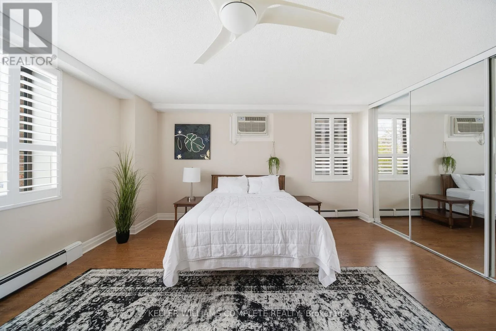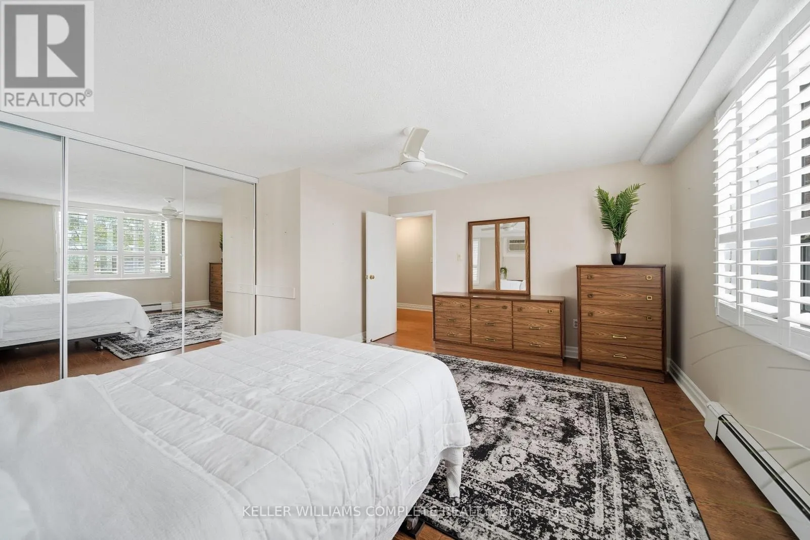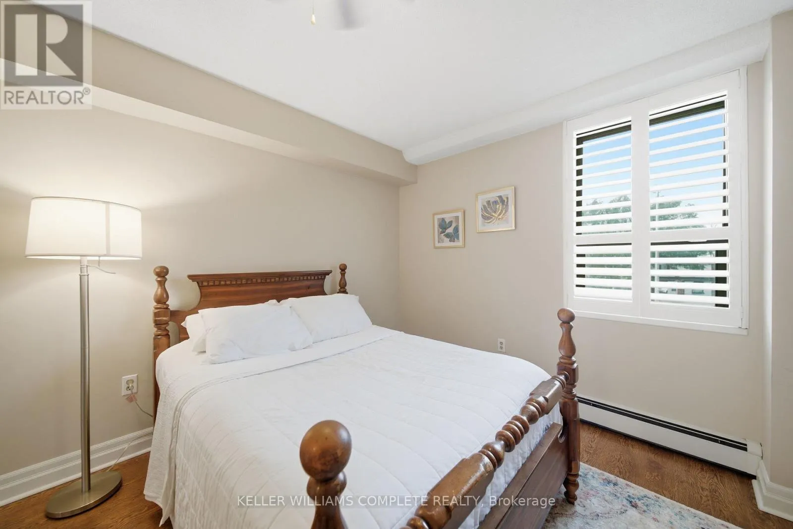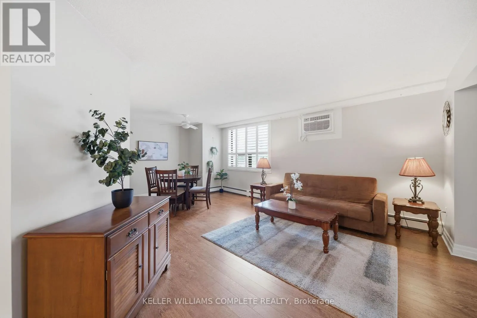 Cross Streets: Church & King Streets. ** Directions: Exit 406 at Geneva north, turn East onto Church, on left at King& Church. Spacious and versatile 2-bedroom, 1.5-bath condominium in a desirable downtown St. Catharines location! This bright corner unit offers approximately 1,250 sq. ft. of living space with a functional layout, large principal rooms, and plenty of natural light throughout.The open-concept living and dining area is perfect for entertaining, complemented by California shutters and a cozy flex room that can easily serve as a 3rd bedroom, den, or hobby space. The kitchen provides ample cabinetry and a convenient pass-through to the dining area. A bonus storage room adds versatility and could be converted into an in-suite laundry or office for added functionality.Both bedrooms are generously sized, and the main bathroom features a tub/shower combination with neutral finishes, along with a convenient 2-piece bathroom off the foyer.Enjoy the convenience of having all major amenities located on the same floor-including a party room, fitness room with sauna, BBQ terrace, and shared laundry facilities available on each floor. The building offers excellent security, controlled access, and an on-site superintendent for peace of mind.Water, heat, air conditioning, hydro, high-speed internet, Bell Fibe TV (including Crave and STARZ), and one indoor, secure parking space with controlled access are all covered by the condo fee, providing a truly all-inclusive lifestyle.Located within walking distance to restaurants, shopping, parks, and transit, this well-maintained condominium offers exceptional value and flexibility for those seeking space, comfort, and downtown living. (id:27476)