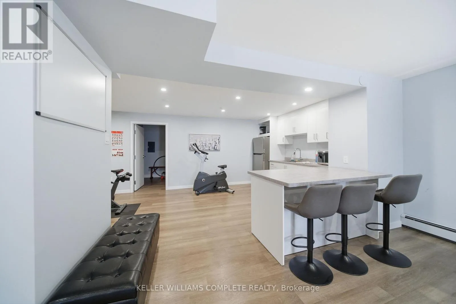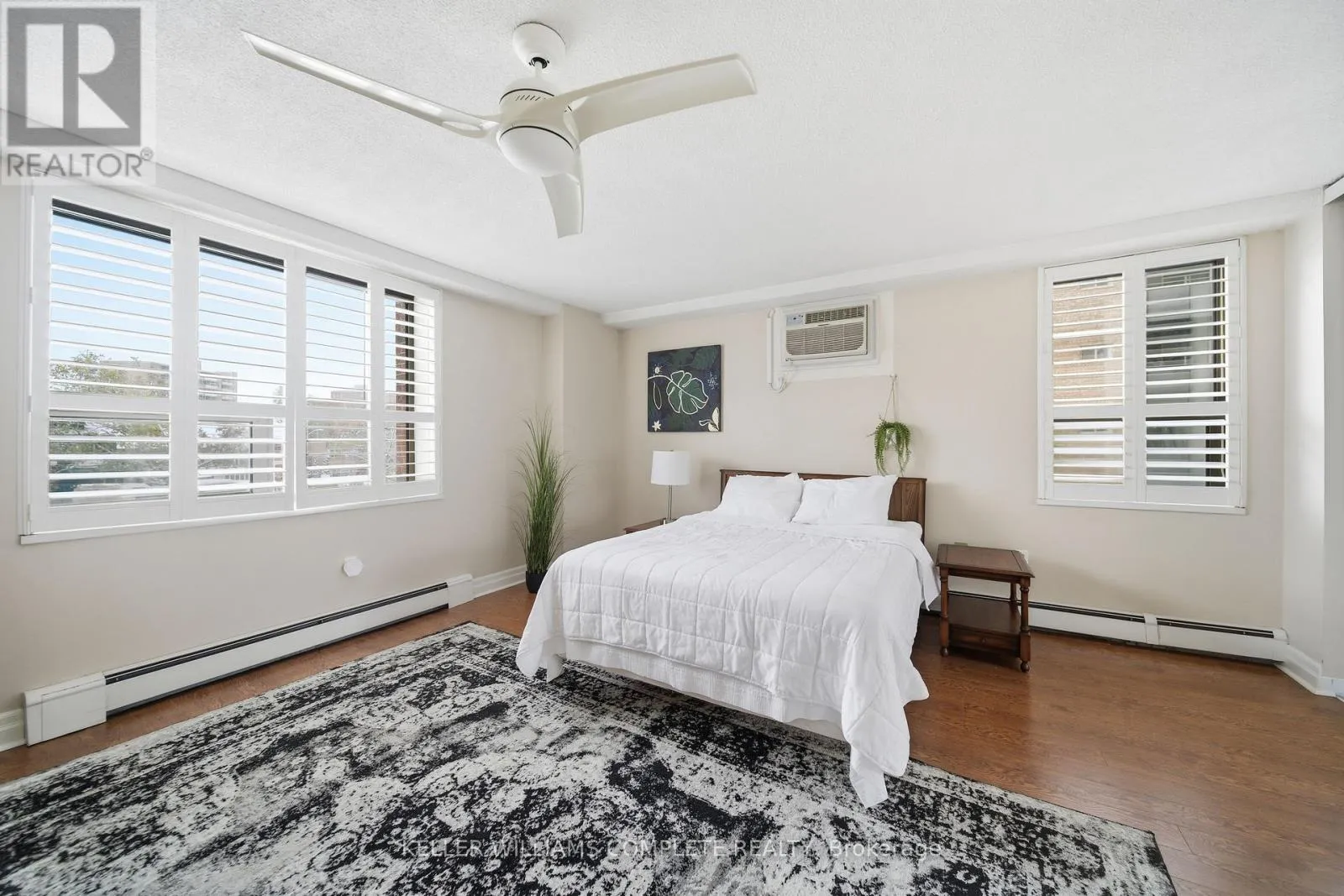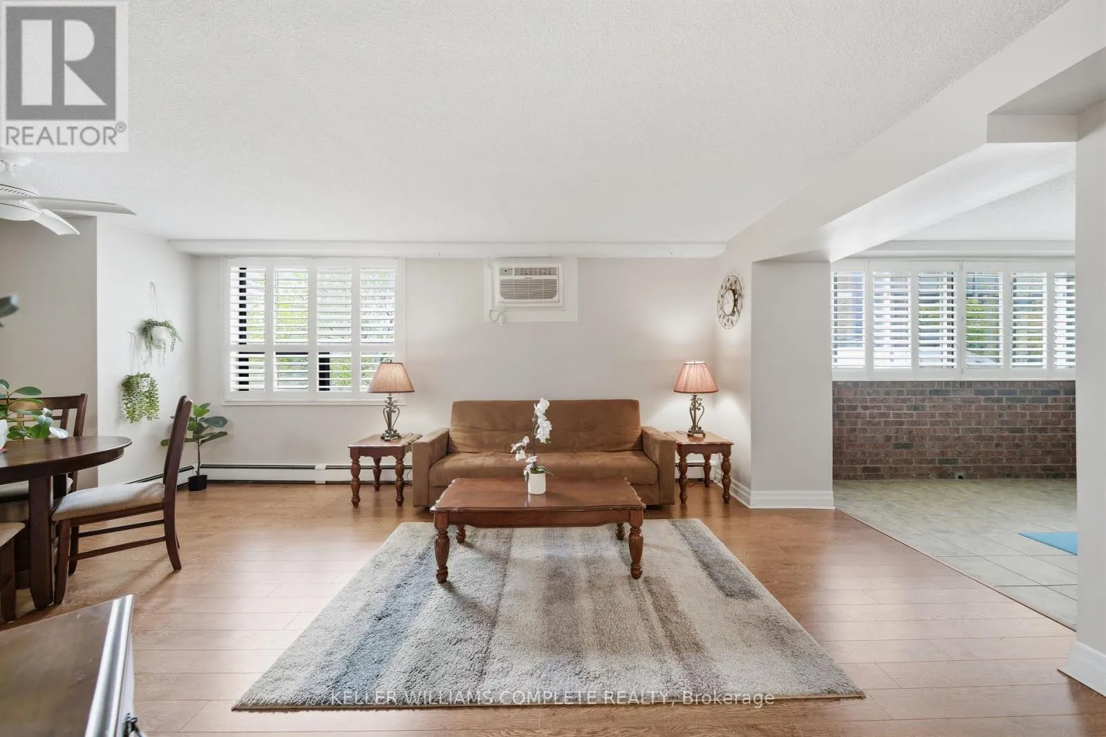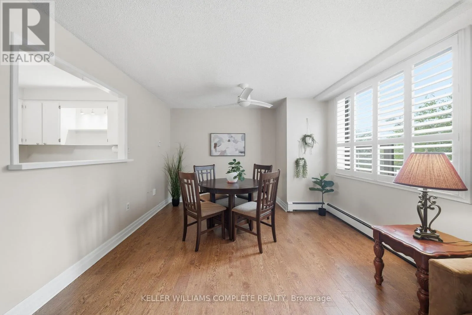 Cross Streets: Church & King Streets. ** Directions: Exit 406 at Geneva north, turn East onto Church, on left at King& Church. Spacious and versatile 2-bedroom, 1.5-bath condominium in a desirable downtown St. Catharines location! This bright corner unit offers approximately 1,250 sq. ft. of living space with a functional layout, large principal rooms, and plenty of natural light throughout.The open-concept living and dining area is perfect for entertaining, complemented by California shutters and a cozy flex room that can easily serve as a 3rd bedroom, den, or hobby space. The kitchen provides ample cabinetry and a convenient pass-through to the dining area. A bonus storage room adds versatility and could be converted into an in-suite laundry or office for added functionality.Both bedrooms are generously sized, and the main bathroom features a tub/shower combination with neutral finishes, along with a convenient 2-piece bathroom off the foyer.Enjoy the convenience of having all major amenities located on the same floor-including a party room, fitness room with sauna, BBQ terrace, and shared laundry facilities available on each floor. The building offers excellent security, controlled access, and an on-site superintendent for peace of mind.Water, heat, air conditioning, hydro, high-speed internet, Bell Fibe TV (including Crave and STARZ), and one indoor, secure parking space with controlled access are all covered by the condo fee, providing a truly all-inclusive lifestyle.Located within walking distance to restaurants, shopping, parks, and transit, this well-maintained condominium offers exceptional value and flexibility for those seeking space, comfort, and downtown living. (id:27476)