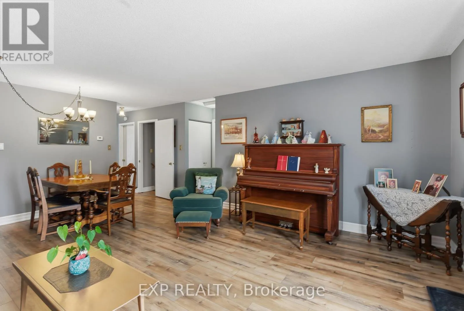 Cross Streets: Bunting Rd & Queenston Rd. ** Directions: Bunting Road between Queenston Rd & Eastchester. Tucked quietly off Bunting Road, this bungalow townhome in the community formerly known as CAW Village offers that "just right" kind of living where life feels simple, comfortable, and easy to manage. Inside, you'll find a bright, functional layout with just under 1000 square feet on the main floor featuring 2 bedrooms and a full bath. The updated vinyl plank floors add a modern touch, while large windows draw in natural light. The kitchen and living area flow naturally to your private rear deck, a peaceful spot to enjoy morning coffee while overlooking the tree-lined common area with no direct neighbours. Downstairs, there's even more space with a finished area that includes a third bedroom, a 3-piece bathroom, laundry, and a workshop zone for hobbies or storage. What makes this home special isn't just the layout; it's the lifestyle. You'll appreciate the easy, low-maintenance living with monthly fees of $440 that cover water, building insurance, and exterior upkeep, plus plenty of visitor parking for when friends drop by. It's ideal for anyone looking to downsize without giving up comfort or convenience. The location couldn't be better, with shopping, restaurants, and quick QEW access just minutes away. You're only 9 minutes from the Outlet Collection at Niagara and 5 minutes from everything you need day-to-day. Affordable living without compromise, move-in ready, well cared for, and waiting for its next chapter-maybe yours. Contact today to schedule your private viewing! (id:27476)