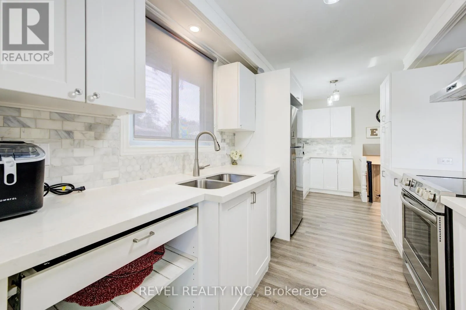 Cross Streets: Rosmore Dr. ** Directions: 406 TO LOUTH ST, PELHAM RD TO ROSMORE DR. TO JILL CRT. Welcome to this beautifully renovated 5-bedroom, 2-bathroom home, perfectly set on a quiet court in highly sought-after West St. Catharines close to Brock University. With over $100K in recent upgrades, this gem truly checks all the boxes! Above grade features 3 spacious bedrooms, a stunning brand new renovated white kitchen with 2-inch quartz counter tops and a full suite of stainless steel appliances. The bright open-concept living area has room for a full-size dining table perfect for entertaining. This carpet-free home also features beautifully refinished hardwoods on the main floor and upper bedrooms with wood look plank vinyl & tile throughout the rest of the home. The timeless, neutral décor adds a modern yet inviting touch. Downstairs, discover a fully self-contained in-law suite with 2 bedrooms, a separate kitchen with matching 2-inch quartz counter tops and stainless steel Whirlpool appliances (2025), its own laundry, and private outdoor space ideal for multi-generational families or income potential. Both levels enjoy convenient in-unit vent-less laundry suites (2025) Step outside and prepare to be wowed, an outdoor entertainer's delight! The backyard features a heated 15x30 above-ground pool (2023) 12x12 deck, fire pit area, and two hardtop gazebos. Turf has been thoughtfully added around the pool and fire pit for easy maintenance and year-round enjoyment. Both the upper and lower units have their own private outdoor living spaces, each with access to the pool and hot tub, your very own backyard retreat. Additional features include: Extra-long driveway with parking for up to 6 cars, Attached garage, Quiet court location in a family-friendly neighbourhood, New fencing and Cedar Gazebo (2025) Whether you're looking for space for a large family, a multi-generational setup, or simply a turn-key home in one of St. Catharine's most desirable areas, this property is the total package. Don't wait-this one won't last long! Book your showing today. (id:27476)