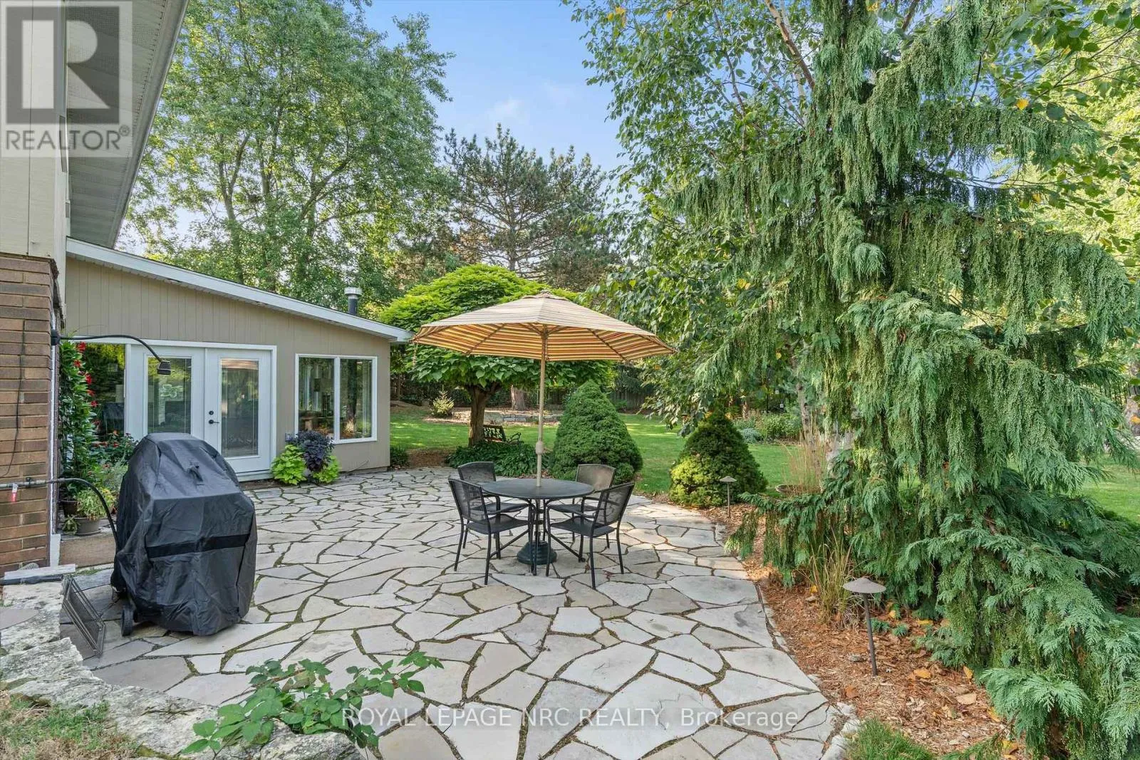 Richelieu Dr. Nestled at the quiet end of a cul-de-sac, 42 The Cedars offers an incredibly rare combination of privacy, nature, and beautifully reimagined living space. This one-of-a-kind back-split designed more like a raised bungalow sits on a stunning pie-shaped lot with a park-like backyard that feels like your own private oasis.The crown jewel of this property? Direct access from your backyard gate to the scenic Walkers Creek Trail, one of St. Catharines' most beloved walking paths. Whether you're strolling, jogging, or just enjoying the peaceful views, this location is truly something special.Inside, this home has been thoughtfully transformed over the past 15 years with no detail overlooked. The heart of the home is the bright and airy lower-level living space, which walks out to the breathtaking yard complete with decks, patios, armour stone gardens, and designer sheds nestled among mature trees. The modern custom kitchen features quartz countertops, a stylish beverage bar, and ample storage all perfectly situated adjacent to the dining area. Natural light floods the space, enhanced by designer lighting and a cozy fireplace that adds ambiance on cooler days.Upstairs, youll find three spacious bedrooms, including a generous primary suite with a walk-in closet and beautifully updated ensuite. The main entry level includes a fantastic flex space ideal as a den, recreation room, or guest suite. With its own bedroom and bathroom, this area is perfect for a B&B setup, in-law suite, or private space for an adult child.The unfinished basement level offers even more space for storage or a workshop, while the extra-long driveway and attached garage provide plenty of parking. This home isn't just a place to live it's a lifestyle. Surrounded by nature, yet close to all the amenities of North End St. Catharines, it's a truly rare offering. (id:27476)