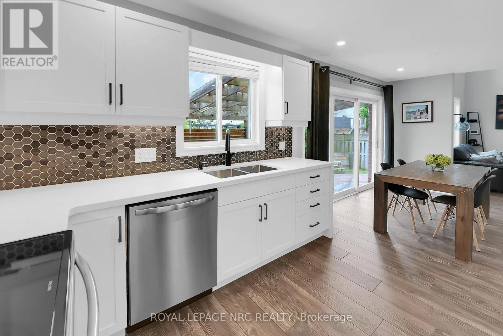 Cross Streets: WESTLAND ST. ** Directions: WESTLAND TO MCBRIDE. Welcome to 80 McBride Drive! Located in the highly desirable Vansickle area of St. Catharines, this brick two-storey home offers over 2,500 square feet of finished living space in a family-oriented neighbourhood close to schools, parks, shopping, and all amenities.The main floor features a bright, modern kitchen renovated in 2025, open living and dining areas, and a cozy fireplace updated in 2022, all complemented by wood and tile flooring throughout no carpeting. A convenient two-piece bathroom is also located on this level.Upstairs, youll find three spacious bedrooms and two full bathrooms, including a beautiful primary suite with a walk-in closet featuring built-in shelving, and a private 3-piece ensuite. A four-piece bathroom serves the additional bedrooms.The fully finished lower level adds exceptional versatility with a large fourth bedroom, its own four-piece bathroom, and a kitchen area ideal for extended family, guests, or teen living.This home has been lovingly updated over the years, offering peace of mind and modern comfort. Notable improvements include the furnace and air conditioning in 2019, a full kitchen renovation in 2025, the primary ensuite in 2020, main floor flooring in 2021, updated staircase in 2022, and basement bedroom flooring in 2022. Additionally, the kitchen window, patio door, living room, office, and bedroom windows were replaced in 2024 with AV filter glass for efficiency and comfort.With four bedrooms, four bathrooms, a basement kitchen, a insulated and heated double-car garage, and thoughtful upgrades throughout, 80 McBride Drive is move-in ready and waiting for its next chapter.Dont miss your chance to own this exceptional home in one of St. Catharines most sought-after neighbourhoods! (id:27476)