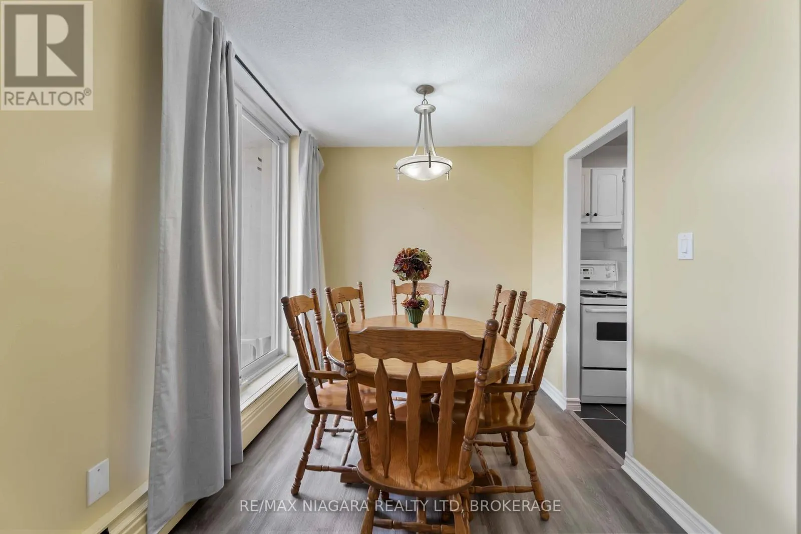 Cross Streets: Scott. ** Directions: Geneva. Discover effortless condo living in this beautifully maintained 6th-floor unit located in the highly sought-after Parklands building. (2 bed 1 bath)With panoramic treetop views and abundant natural light, Unit 602 offers a peaceful and elevated lifestyle just steps from Fairview Mall and everyday essentials. This unit has a great layout with formal dining area and large living rm updated laminate floors throughout, kitchen with new countertops, freshly painted , 2 oversized bedrooms one with walk in closet. 4 pc bathroom, lots of closet space plus an in unit storage locker. Located in a quiet and secure mid-rise building, Parklands offers elevator access, visitor parking, on-site laundry, and beautifully maintained grounds with green space and a community garden. Perfectly situated steps from Fairview Mall, grocery stores, banks, public transit, and restaurants, and just minutes to the QEW, downtown St. Catharines, and nearby parks. Whether you're downsizing, investing, or buying your first home,(condo fees include heat, water and 1 outside parking spot) (id:27476)