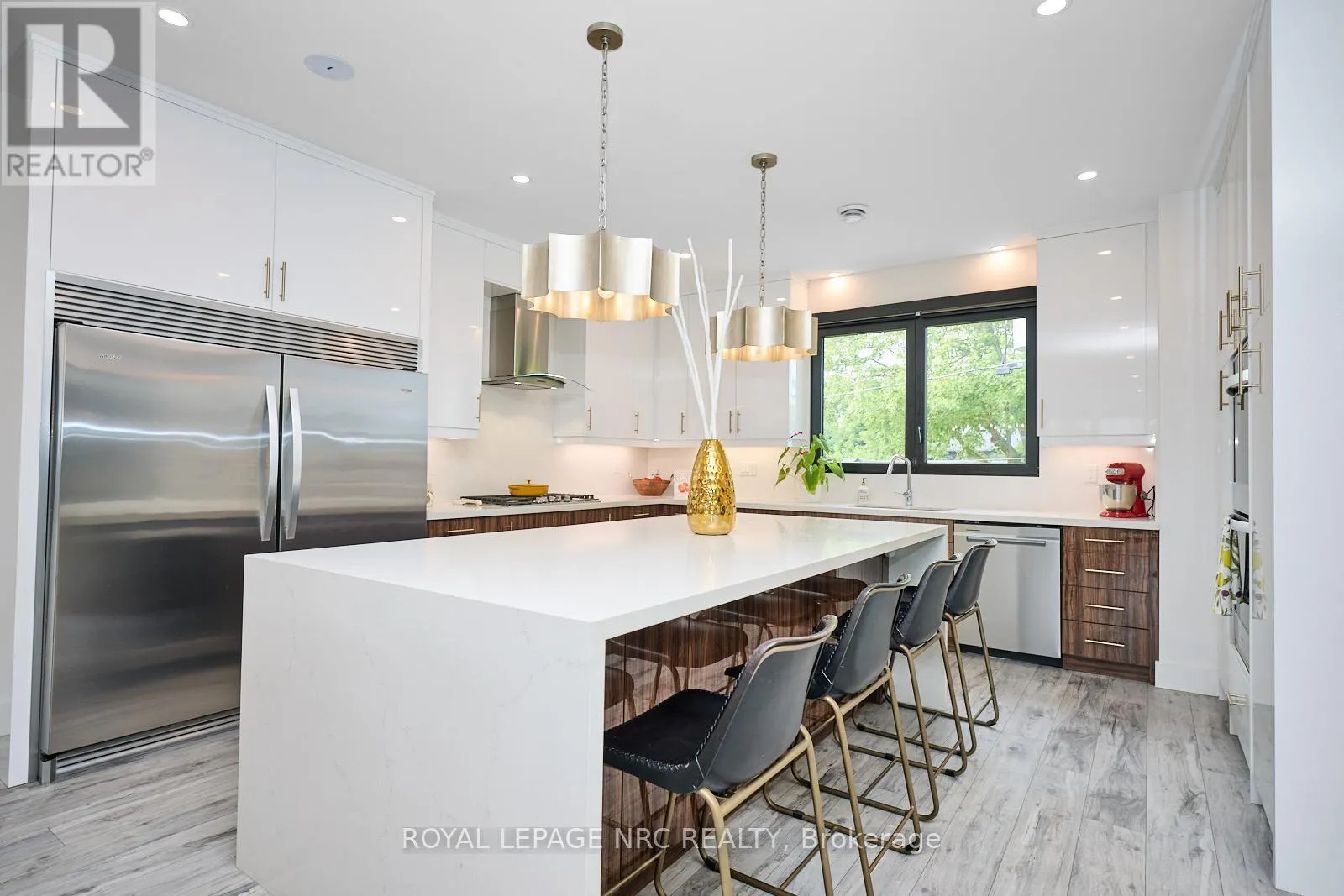 Cross Streets: Main St and Corbett Ave. ** Directions: Pawling off Bayview between Shelley and Corbett. Breathtaking 3 storey custom-built luxury home, ideally situated in the heart of Port Dalhousie, one of Ontario's most sought-after lakeside communities. This thoughtfully designed and expertly crafted home seamlessly integrates elegance, comfort and modern sophistication. Spanning over 6,700 sq ft of meticulously finished living space, this architectural gem features soaring ceilings, designer finishes, expansive windows and a harmonious indoor-outdoor connection.You are welcomed by an awe-inspiring foyer with open staircase ascending to the 2nd level, guiding you to the grand open-concept living area and dining room, separated by a striking 3-sided fireplace. The gourmet chefs kitchen is a culinary masterpiece, crafted to inspire creativity and delight the senses. Currently designated as a wellness room, this room offers a spacious and versatile space to suit your family's needs, with built-in shelving and electric fireplace. Savour tranquil mornings on your private glass-enclosed terrace as you take in views. Upstairs, the primary suite is a true sanctuary, complete with a spa-inspired ensuite and generous walk-in closet.The additional bedrooms, each with a walk-in closet and ensuite bath are spacious, filled with natural light and complemented by a laundry room and home office with walk-out to the 3rd level glass-enclosed terrace. A notable highlight of this property is the fully self-contained main floor 2-bedroom accessory suite with a private entrance - perfect for guests or as an income-generating rental. (Currently rented for $2,650/mo.) Stylish and spacious, the suite features its own kitchen, living room, baths and separate backyard space. The finished basement enhances the home's living experience. Located steps to the marina, boutique shops, dining and the shores of Lake Ontario, this is more than just a home, it's a lifestyle. Luxury, location and opportunity in one exquisite home. Seize the chance to own a piece of Port Dalhousie's finest real estate. (id:27476)