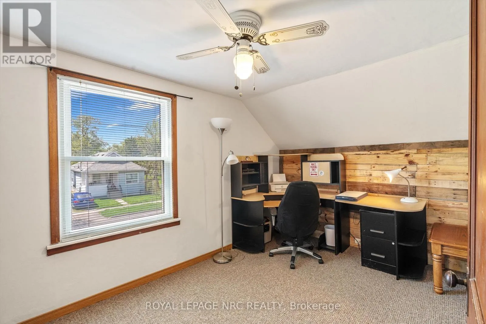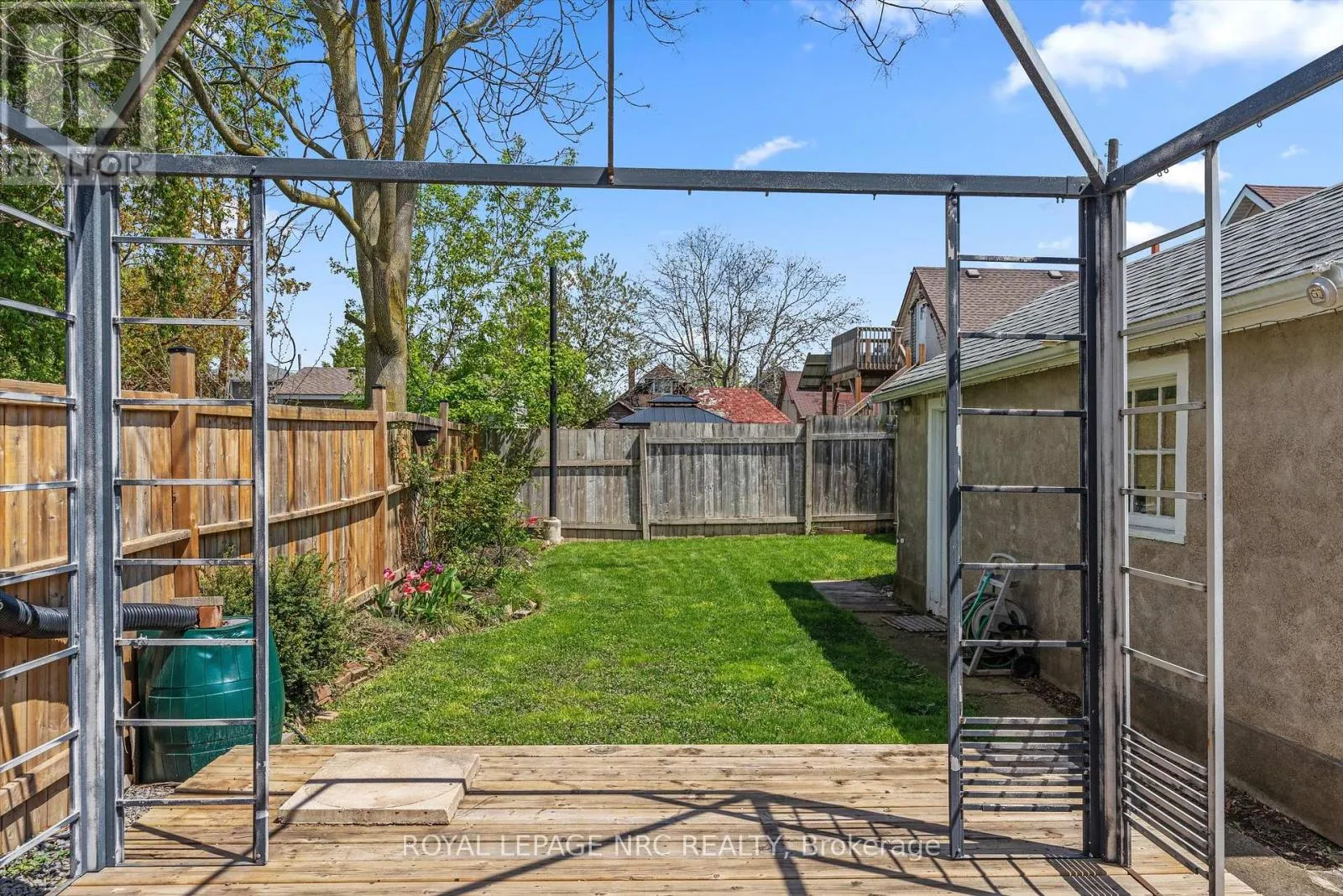 Cross Streets: Welland Ave. ** Directions: Welland Ave. to Haynes. Need a 3rd Bedroom? You can use one of the primary rooms as a 3rd bedroom and still have lots of living space. This affordable stucco 1 1/2 storey home has a large backyard, covered rear entry & an enclosed front veranda. This home has a newer 3 piece bathroom upstairs close to the 2 spacious bedrooms. The main level has a living room, dining room, dinette, kitchen and bathroom. Lots of room on the main floor to make a main floor laundry. The rear yard is mostly fenced with a shed, detached garage and large deck. Private single driveway easily holds 3 vehicles. Lovely municipal park with play equipment can be seen from the house. Easy access to the highway, parks, shopping & walking distance to the bus service. Ready for immediate occupancy. Some features are: Roof shingles 2011, central air unit 2021, gas furnace 2007, replacement Windows 2015-2016, 4 appliances included. (id:27476)