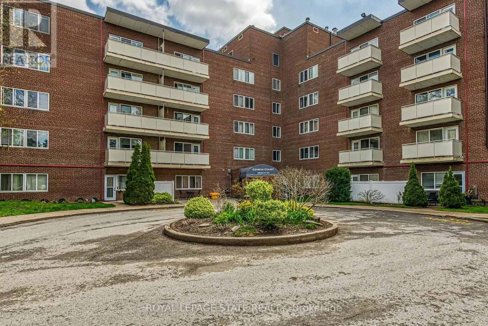 Cross Streets: Geneva & Scott St. ** Directions: Geneva to Scott St. Amazing opportunity to own a fabulous condo in the highly desired Geneva Court building. Step into a beautiful lobby with updated common elements, a gym, party room and outdoor inground pool. This spacious 2 bedroom unit features a primary bedroom with walk in closet, a fresh 4 pc. Bathroom, white kitchen, and spacious living/ dining combination. Enjoy laminate flooring and tons of storage space. The condo fees include (heat, hydro & water). Located close to many amenities and great highway access. Locker # 7, Parking # 74 Move in ready with quick closing available. (id:27476)