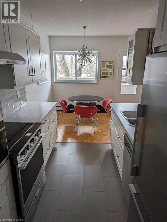 4th Ave Exit off Hwy 406, Head East, Right on Ontario Street, Right on Norris Place Prime Location in the Yates Street Heritage Neighbourhood! Embrace Mid Century Modern living in this meticulous 2-bedroom condo nestled in St. Catharines' coveted Downtown core. Step into a generously sized living and dining area adorned with elegant hardwood parquet flooring, providing a seamless flow throughout. Escape to your own private retreat on the side yard patio, partially covered for year-round enjoyment. The renovated galley kitchen boasts practicality with modern stainless appliances including a fridge, stove, microwave, and dishwasher. Two spacious bedrooms are accompanied by a large bathroom, offering ample comfort. Storage is abundant with numerous closets, while laundry facilities are conveniently located within the building. Enjoy peace of mind with secured entry, a newly installed elevator, and designated parking. Situated in a well-maintained, tranquil 20-unit condo complex, predominantly owner-occupied, just moments from dining, shopping, scenic trails along the 12 Mile Creek, and vibrant downtown entertainment. (id:27476)